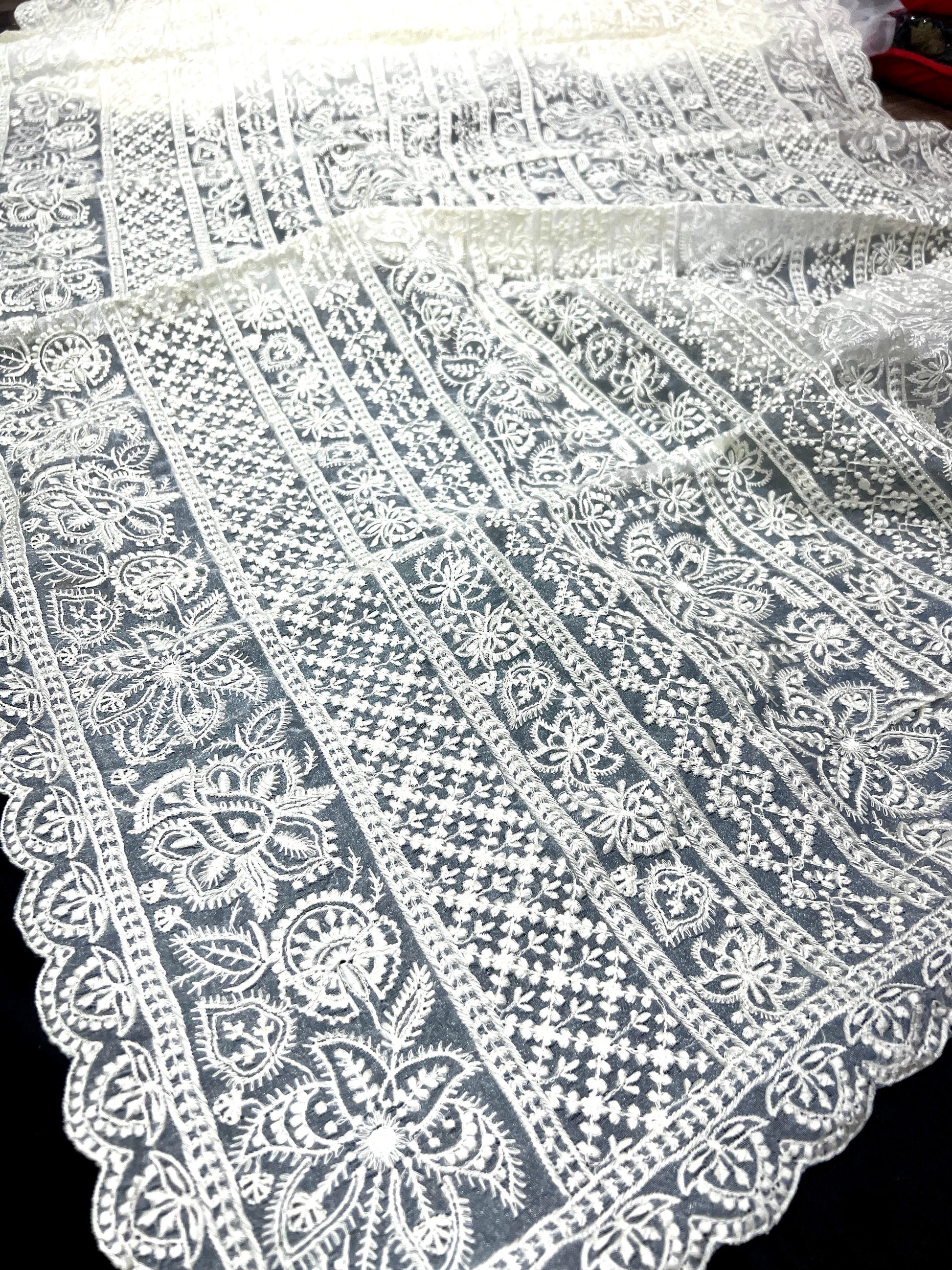 🏷️ Saree :- Khadi Organza With Beautiful Multi Embroidery C-Pallu Cutwork