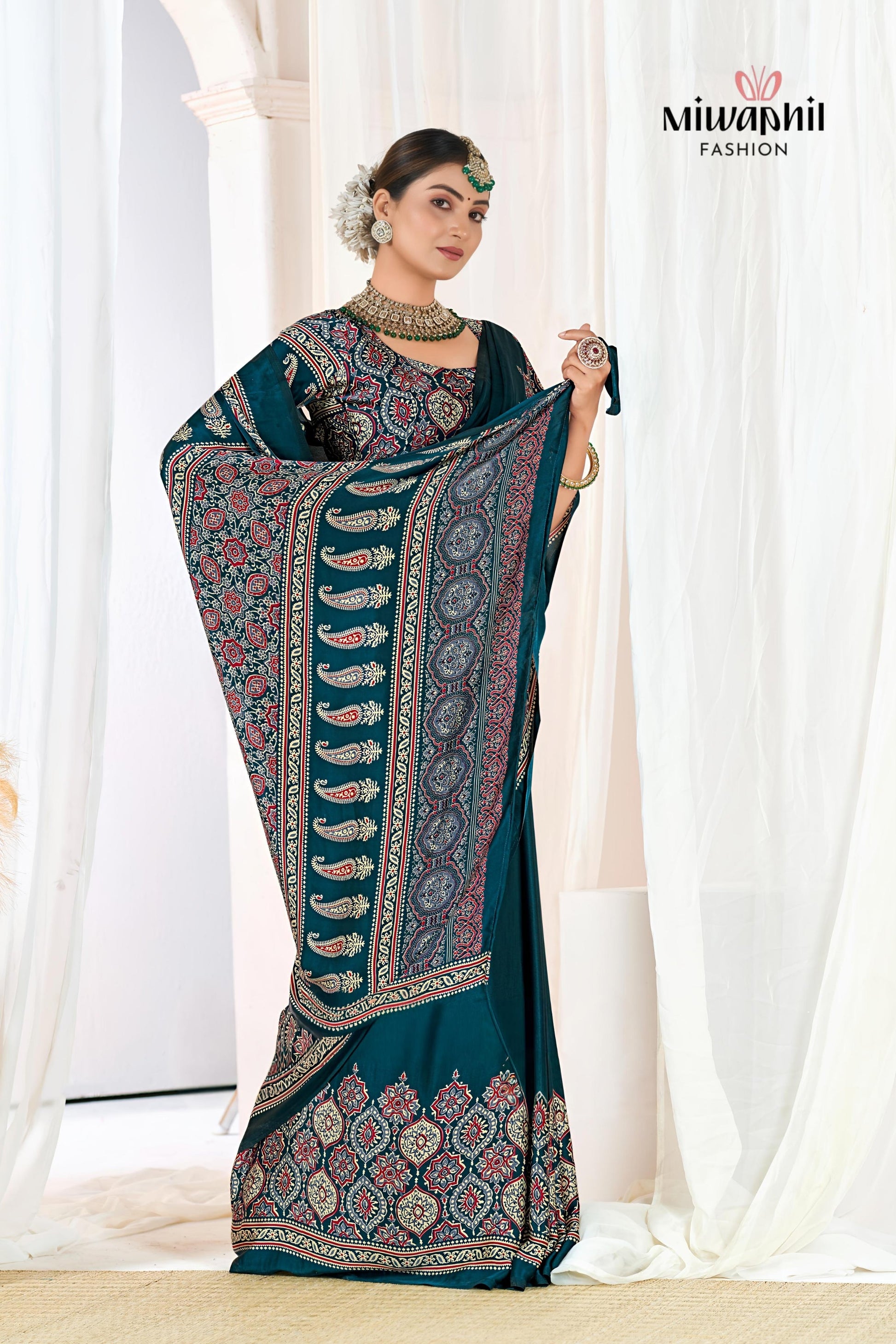 New Ajrakh Modal Silk Ajrakh Fancy Pallu Saree