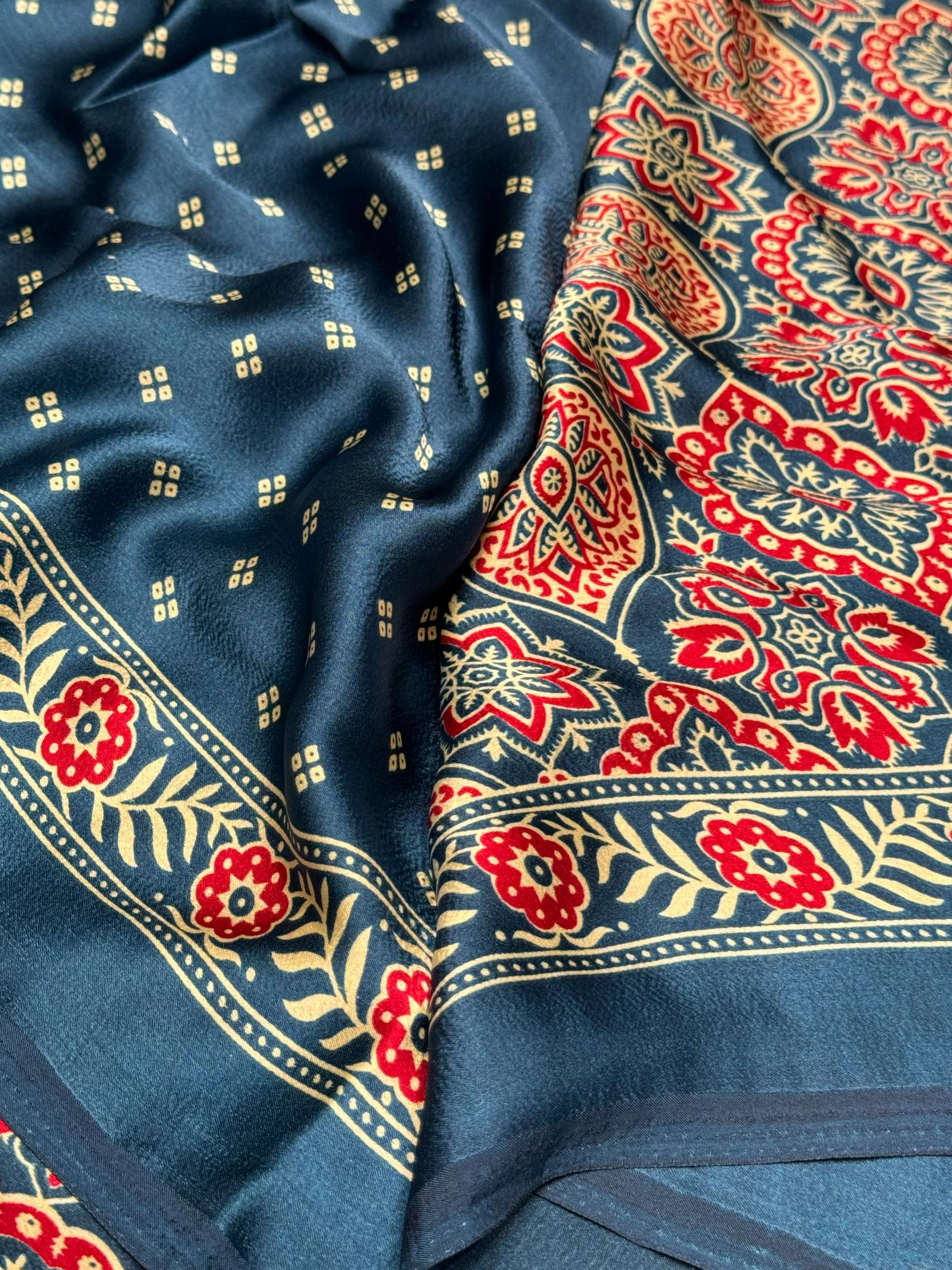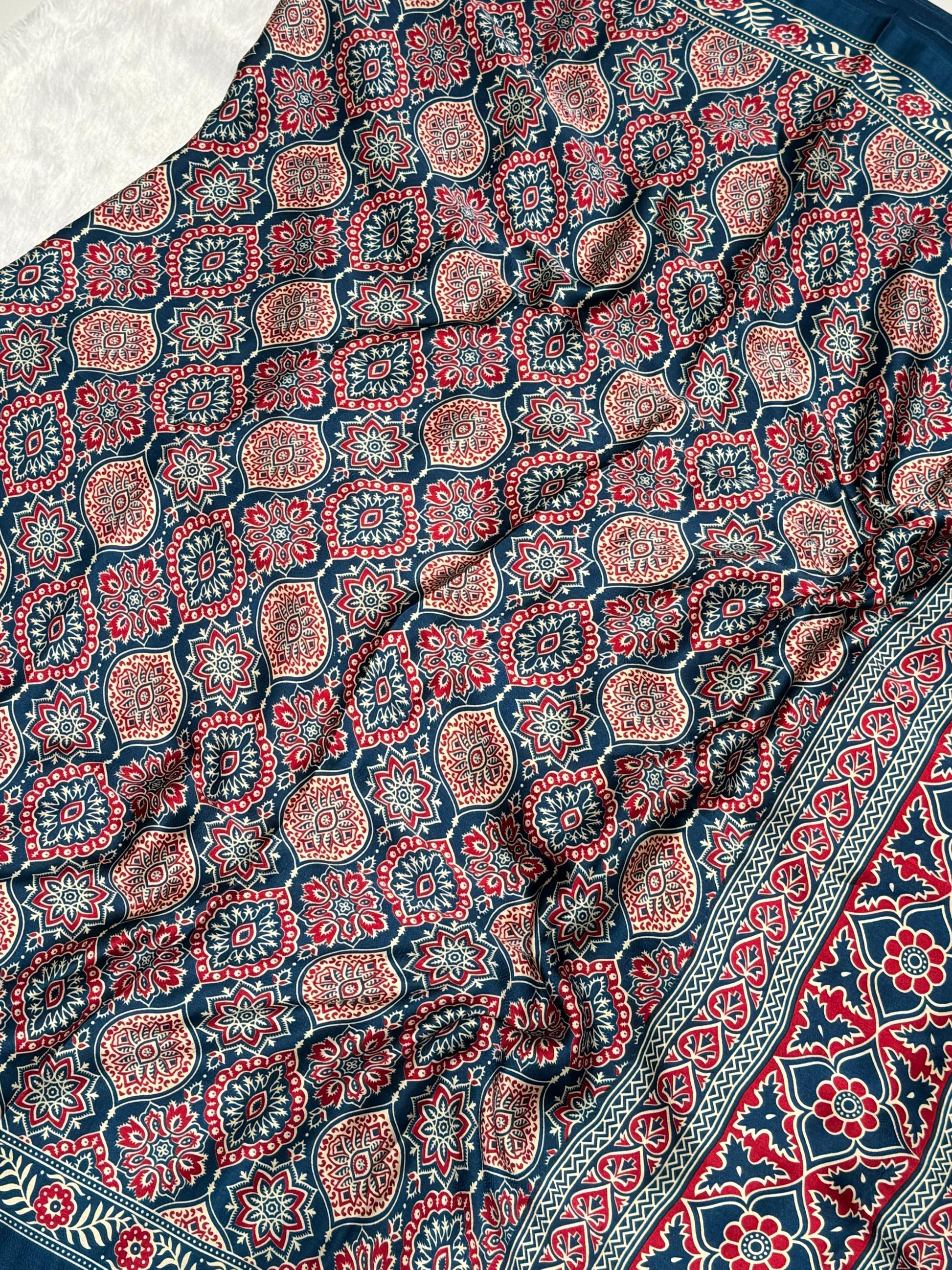 New ajrakh modal Silk Ajrakh Fancy pallu saree