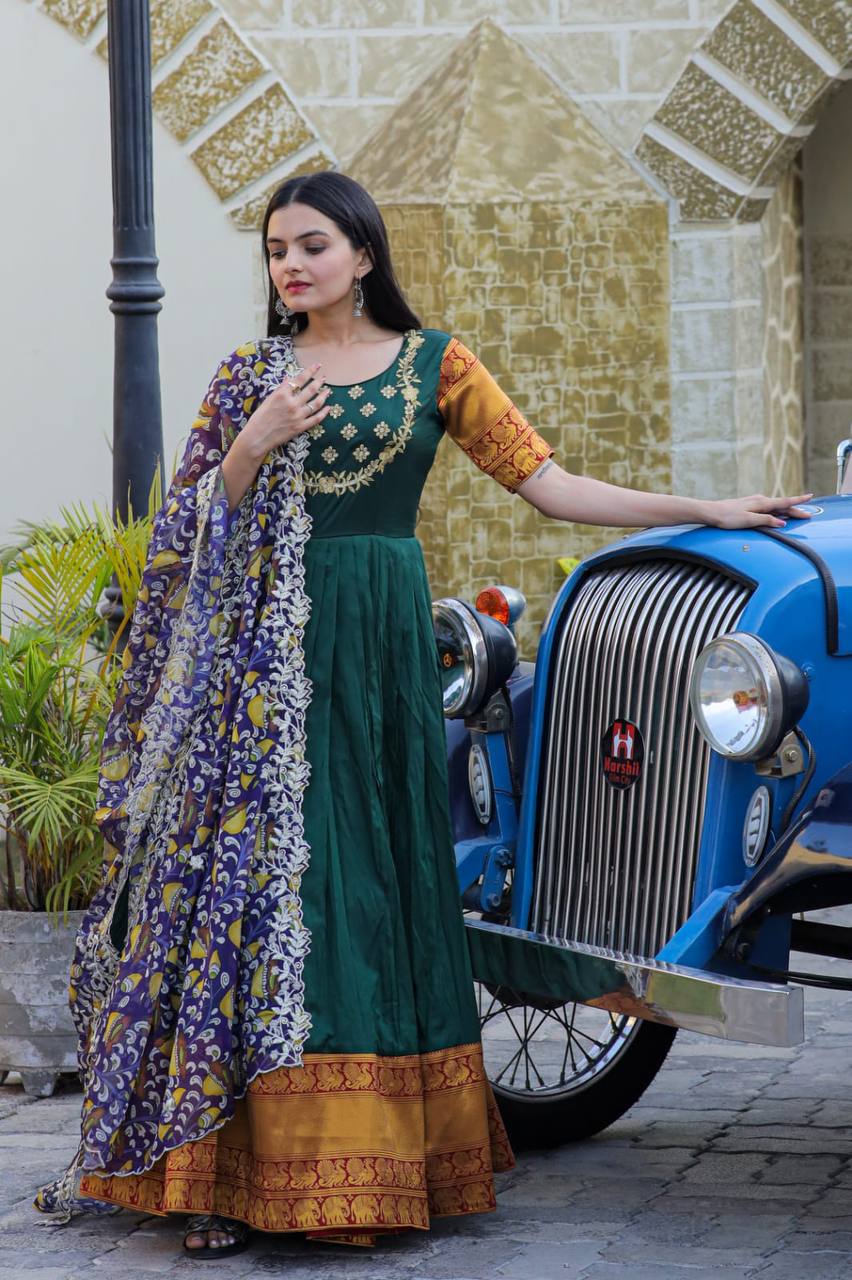 π₯° Silk Gown with Jequard weaving And embroidery work, It looks Adorable for women, it Designed to flatter all body types, gowns for women combine the best parts of western and Indian wear into one stunning ensemble. ππ»