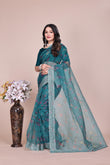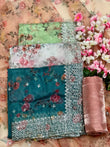 Tissue Organza With Beautiful Flowers Digital Print And Embroidery Zari