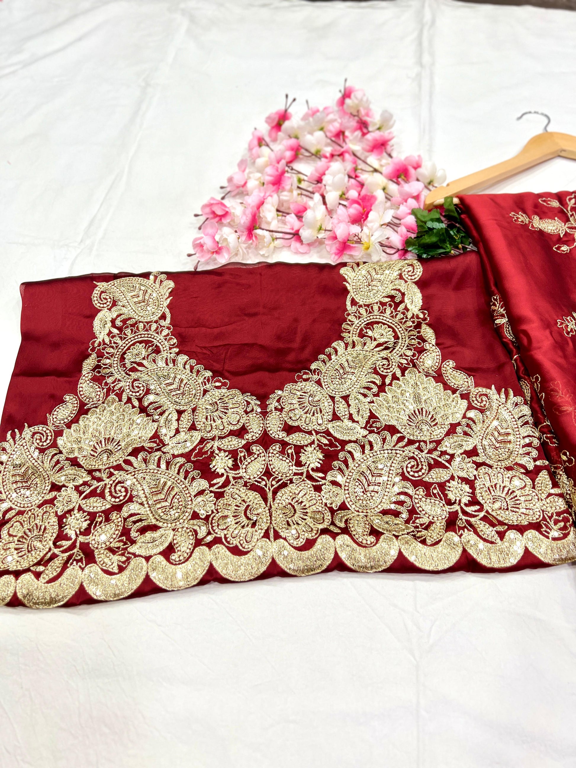 🏷️ Saree :- Heavy Rangoli Silk With Beautiful Zari + 3 M.M Sequence Embroidery Work And C Pallu Cutwork
