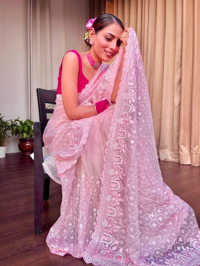 🏷️ Saree :- Khadi Organza With Beautiful Multi + 7 M.M Sequence Embroidery Work And C Pallu Cutwork