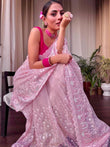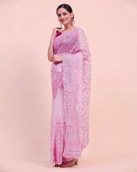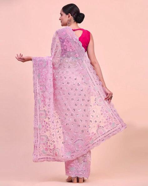Khadi Organza With Beautiful Multi + 7 M.M Sequence Embroidery Work And C Pallu Cutwork