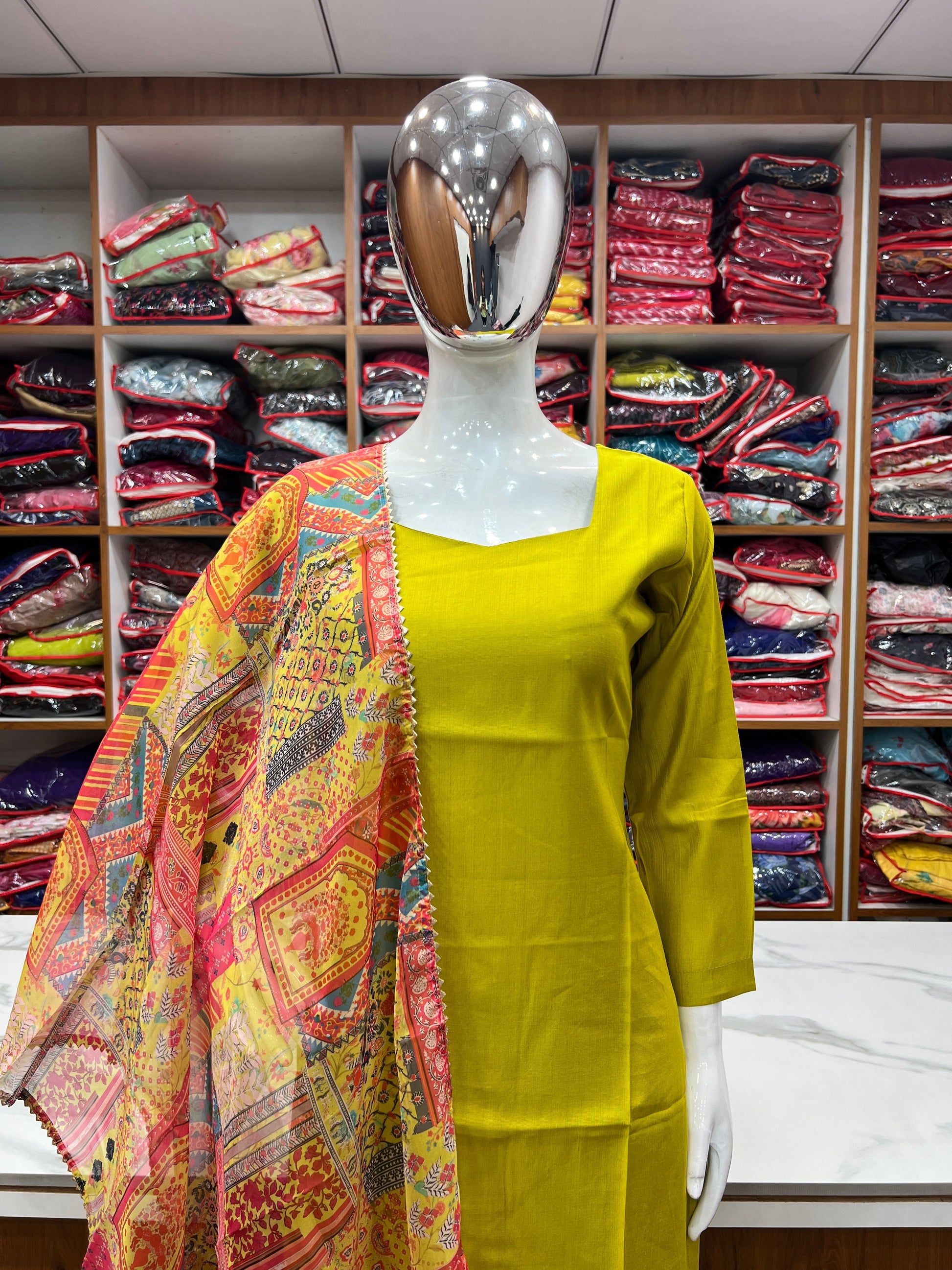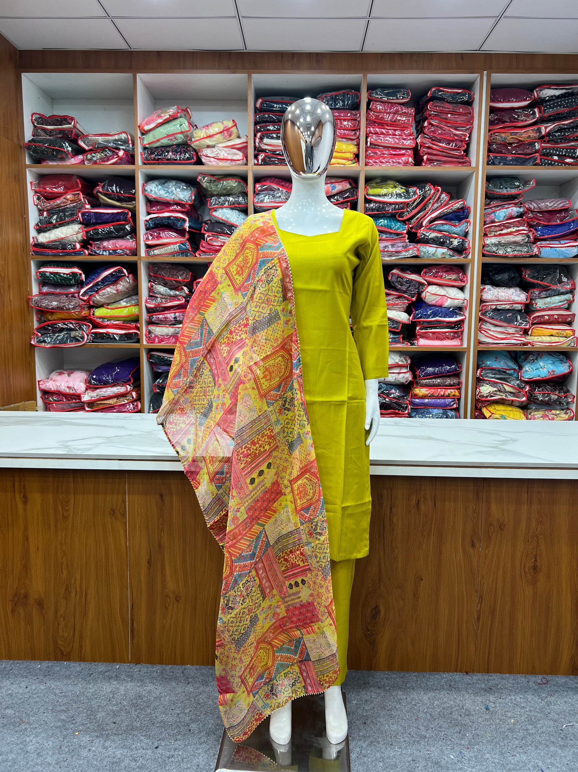 LEMON GREEN PETER PURE VISCOSE FABRIC STRAIGHT FIT SALWAR SUIT