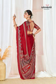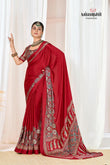 Maroon Ajrakh Printed Modal Silk Plain Saree With Ajrakh Blouse P6