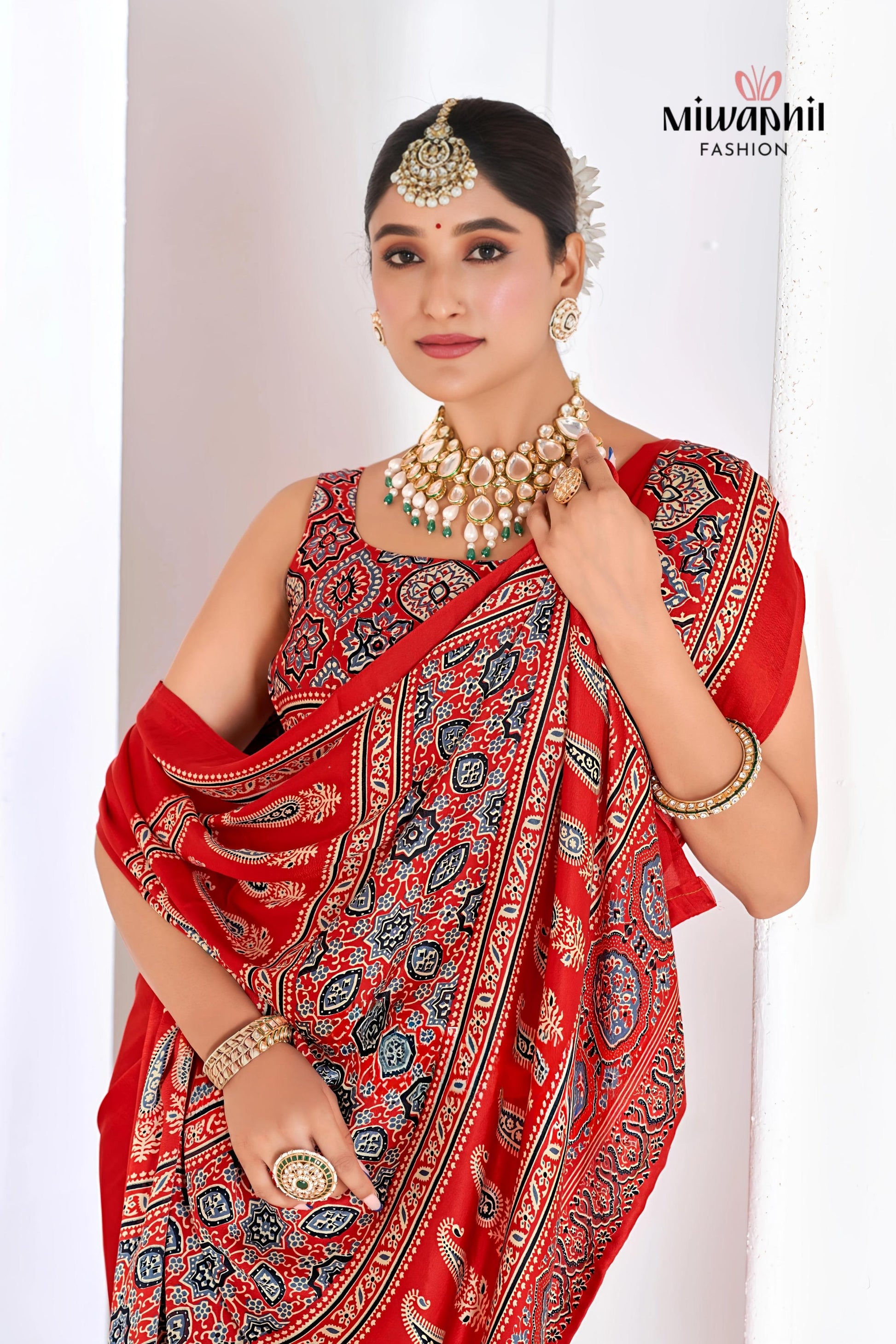 New ajrakh modal Silk Ajrakh Fancy pallu saree
