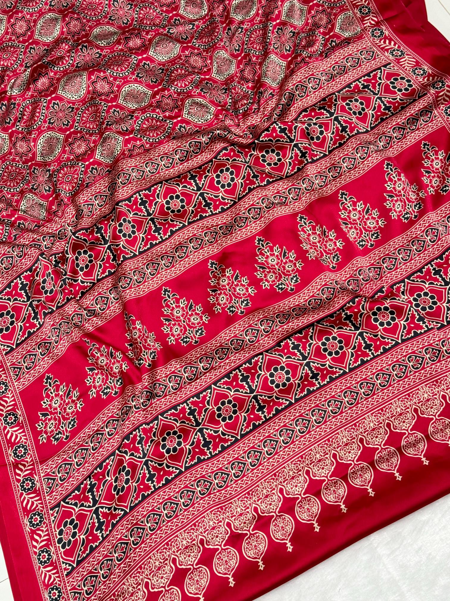 New ajrakh modal Silk Ajrakh Fancy pallu saree
