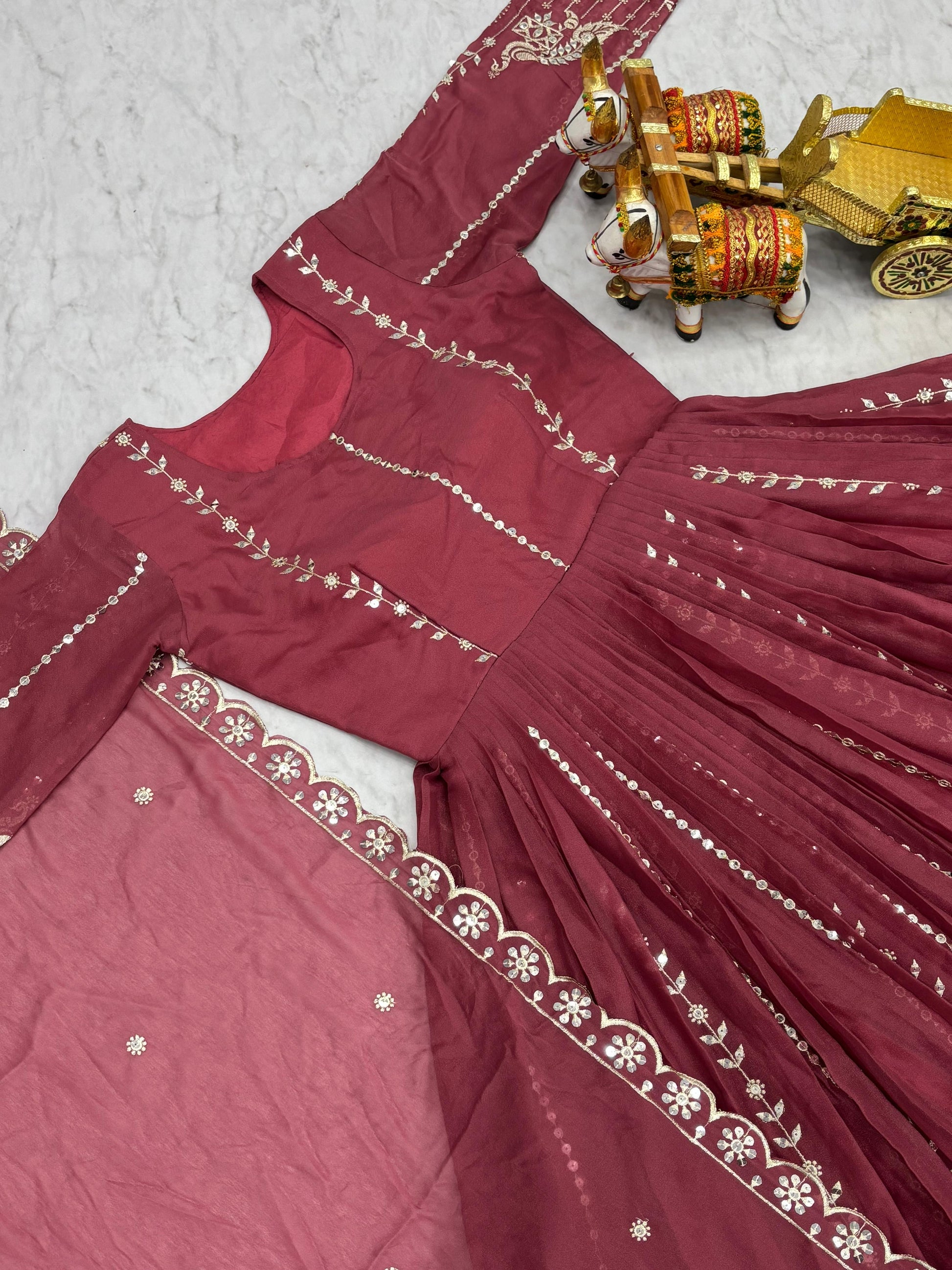Make a statement at weddings, receptions, and festive occasions with this fully stitched designer gown set. Crafted in premium star georgette with heavy 7mm sequins embroidery work, it offers a rich festive flair. Paired with a matching embroidered dupatta, this gown is the perfect blend of elegance and modern fashion.