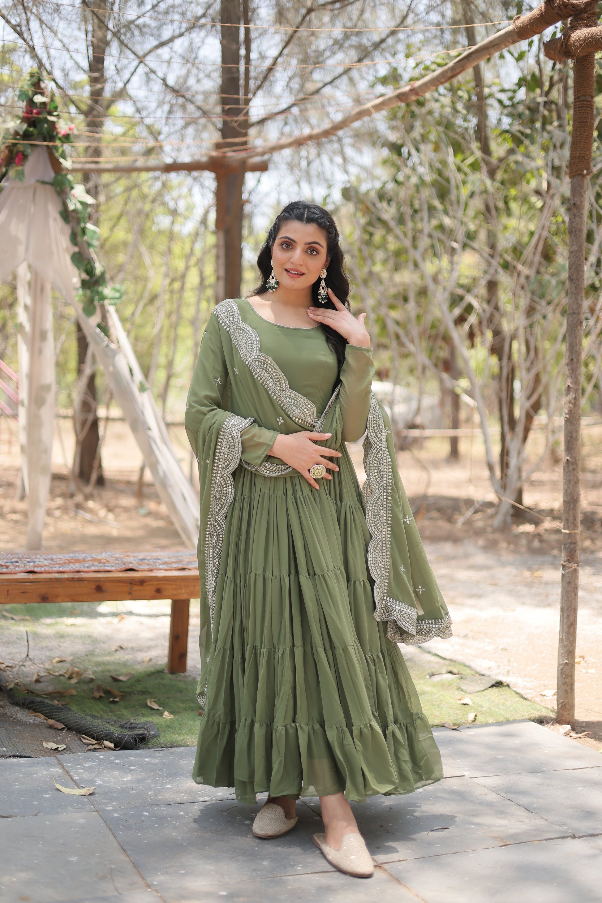 š Desirable Women's Fully Flaired Gown Made With Faux Georgette Fabrics and Designer Embroidered Dupatta šš»