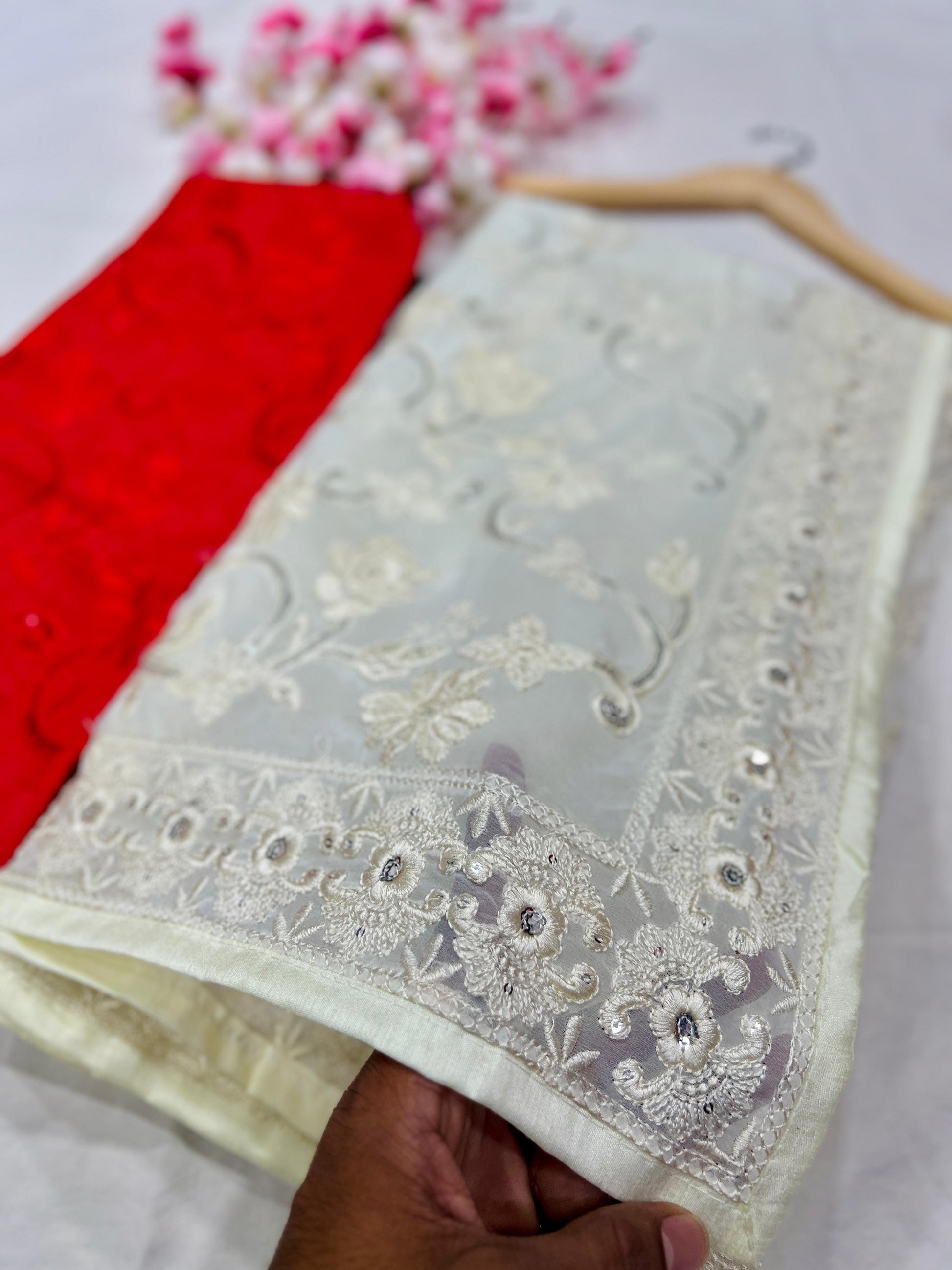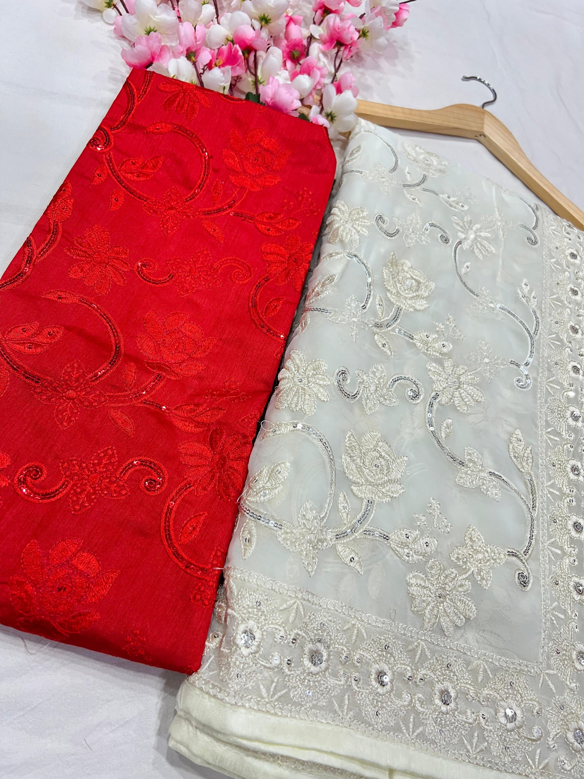 SAREE :- Blooming Georgette With Beautiful C-Pallu Embroidery Multi + 3 MM Sequence Work