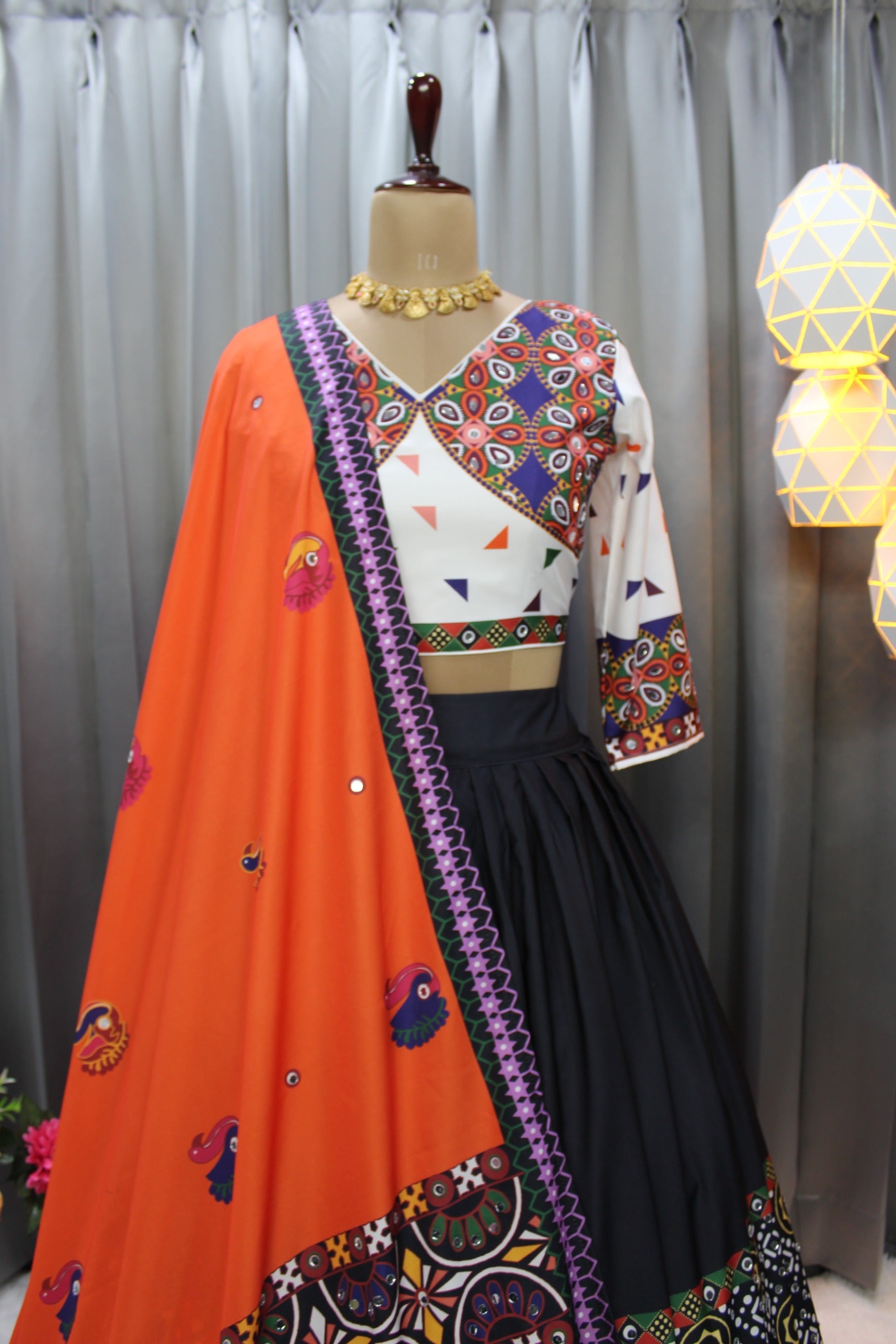 Black Color Soft Butter Silk Chaniya Choli | Fancy Digital with Real Mirror Work for Traditional Wear
