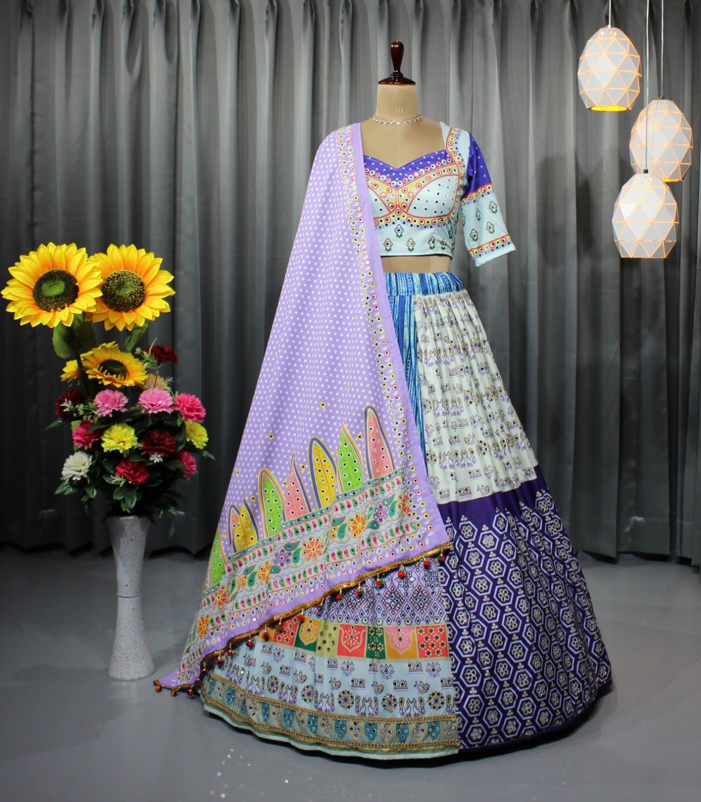 Soft Butter Silk Chaniya Choli | Fancy Digital with Real Mirror Work for Traditional Wear