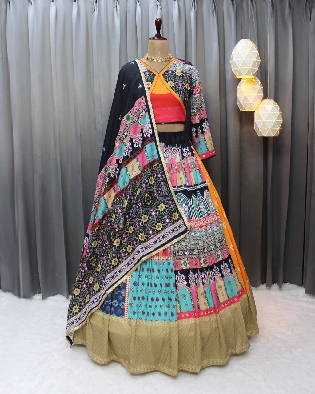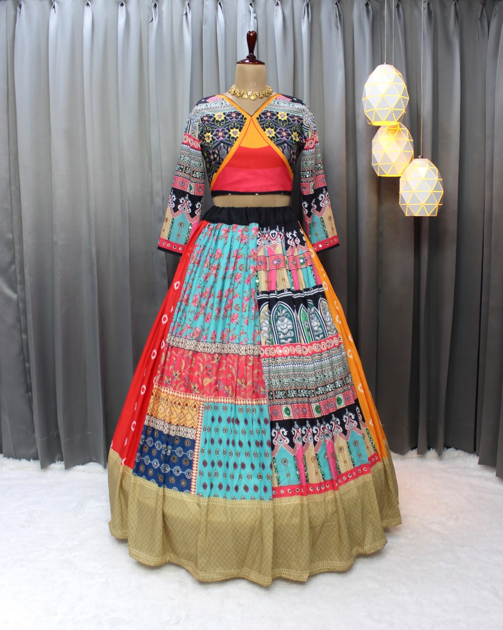 Muslin Cotton Chaniya Choli | Fancy Digital with Real Mirror Work for Traditional Wear