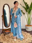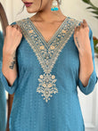 Sky blue Color Viscoz Rayon Casual Kurti Pant Set
