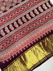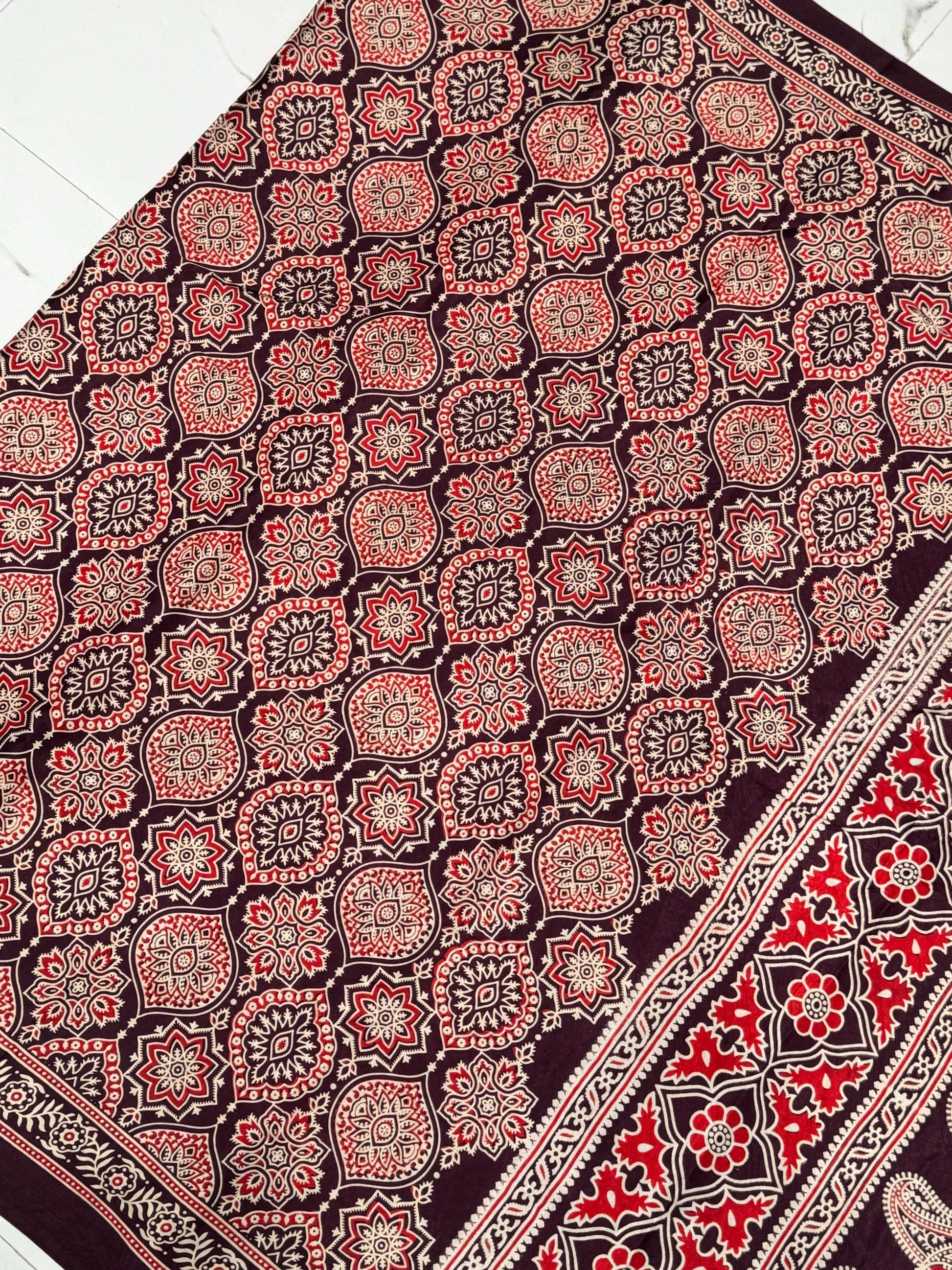 New Wine Ajrakh Hand Block Modal Silk Saree With Zari Pallu A2