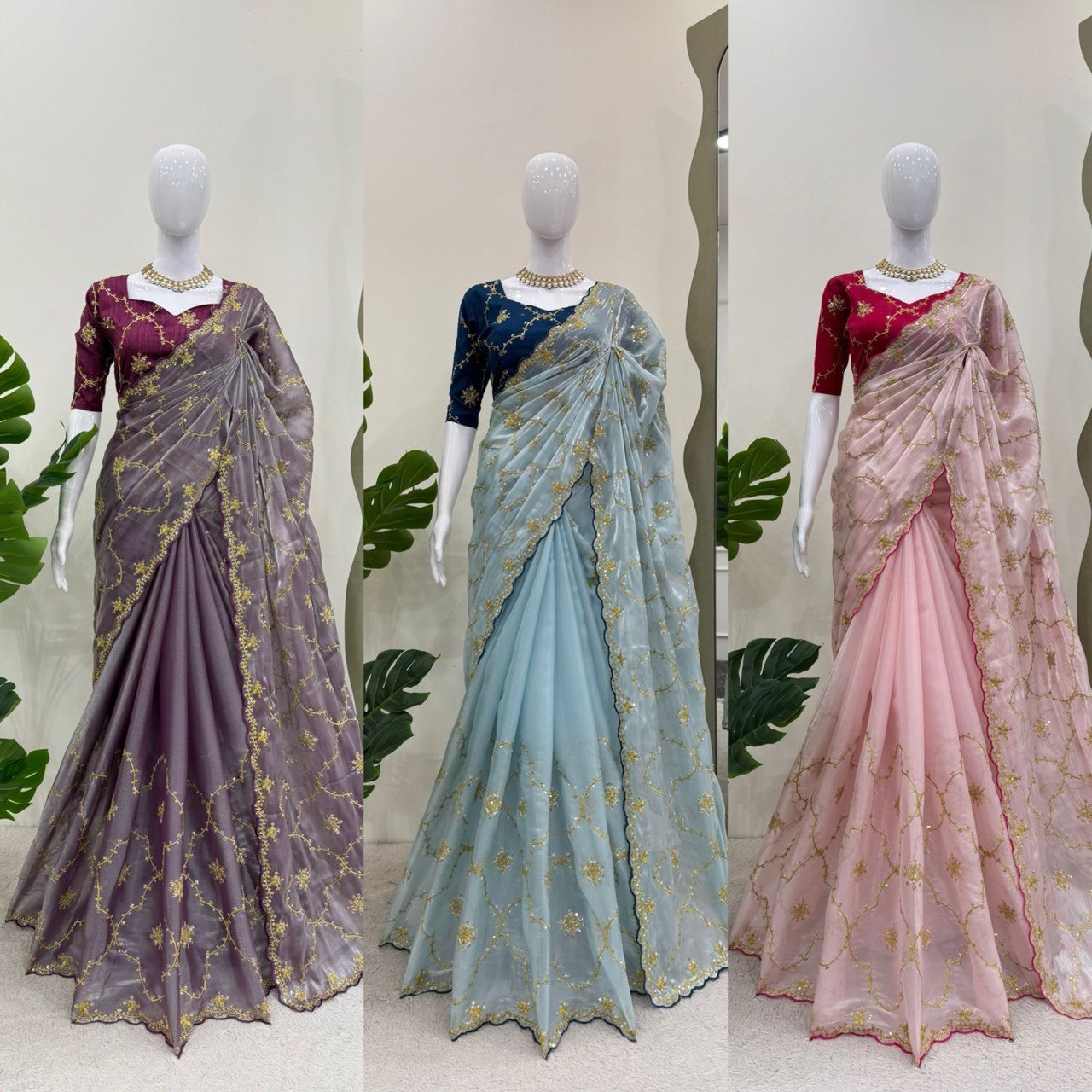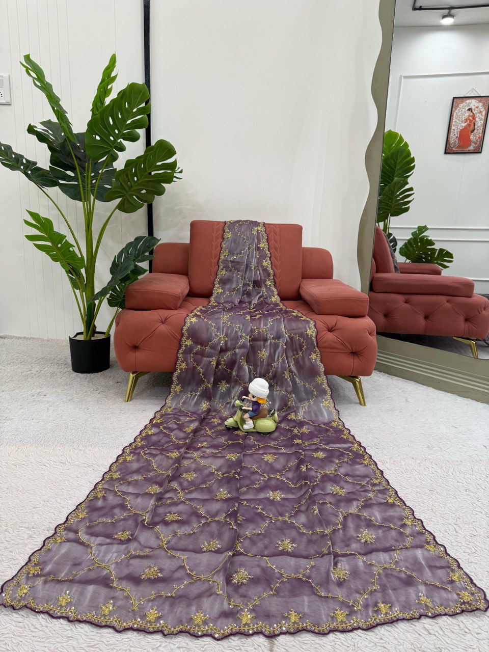 Looking some one for this same colour beautiful Designer Saree on Zimmy Chu Fabric with Thread & Sequence work and blouse on Mono Benglori Silk Fabric with Thread & Sequence work.