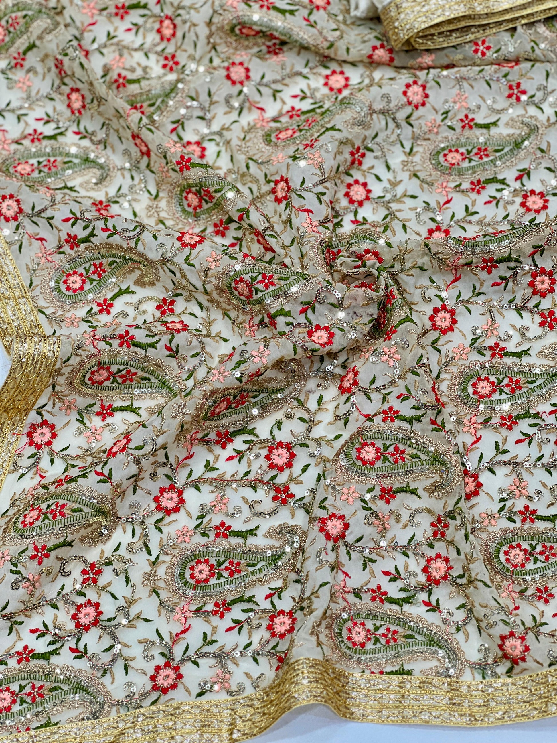 Heavy Fox Georgette With Multi + Zari Embroidery & 3.MM Sequence In Pallu_Skirt Work Saree And Readymade Embroidery Lace Work
