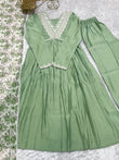 Pista New Pure Soft Heavy Romansilk Chanderi Fabric Nyra Cut Kurta With Duppta Set