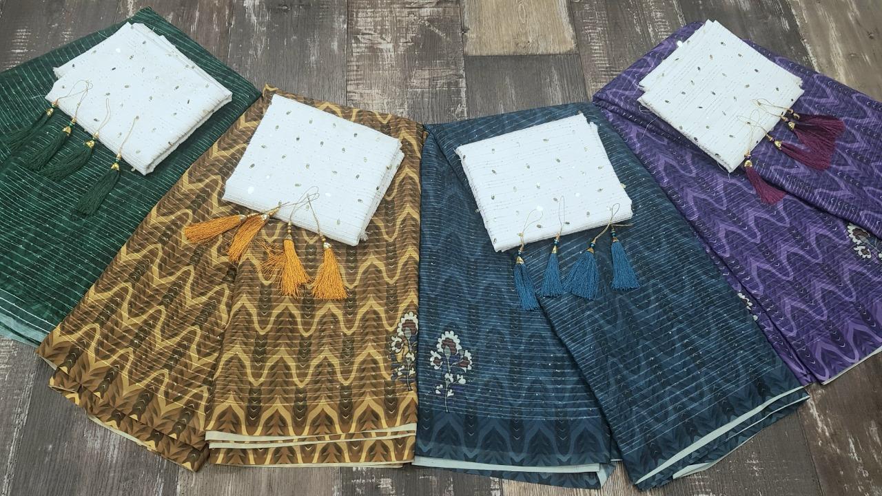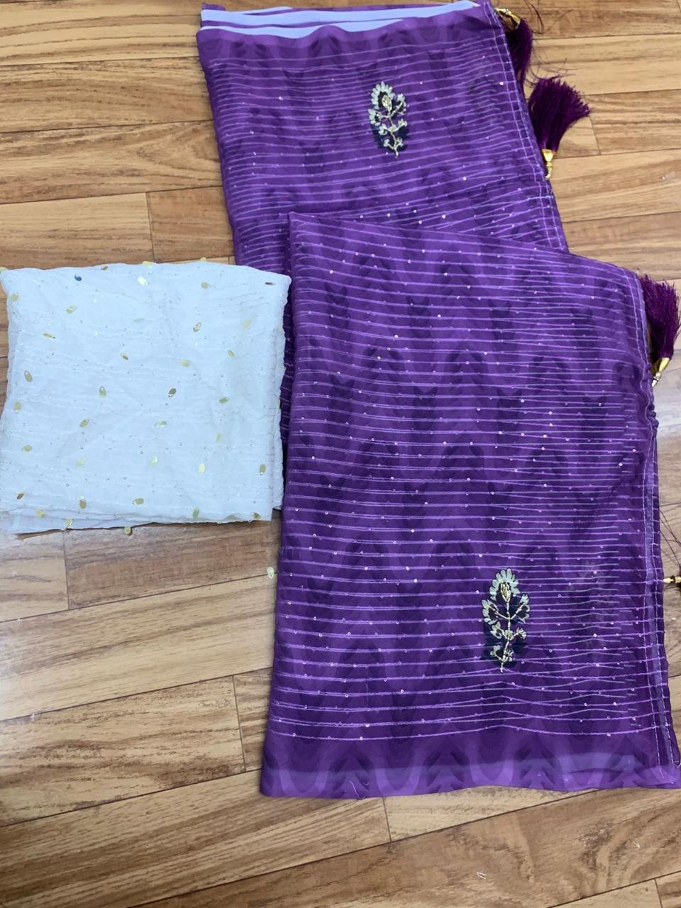 🌈 SAREE :- Georgette With All Over 2MM Crochet Sequence Work With Digital Print On Saree