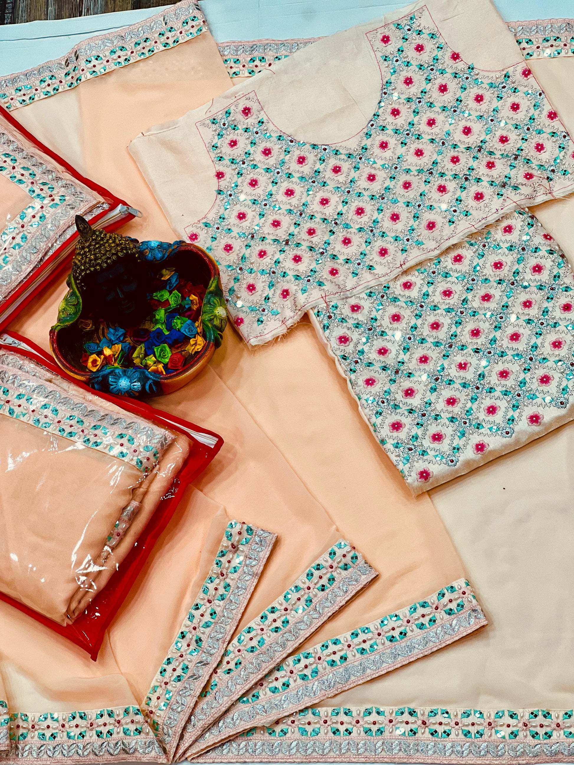 🌜 Saree :- Exclusive Beautiful Faux Georgette With Heavy Embroidery 9 M.M Sequence And Stone Work On Lace Border