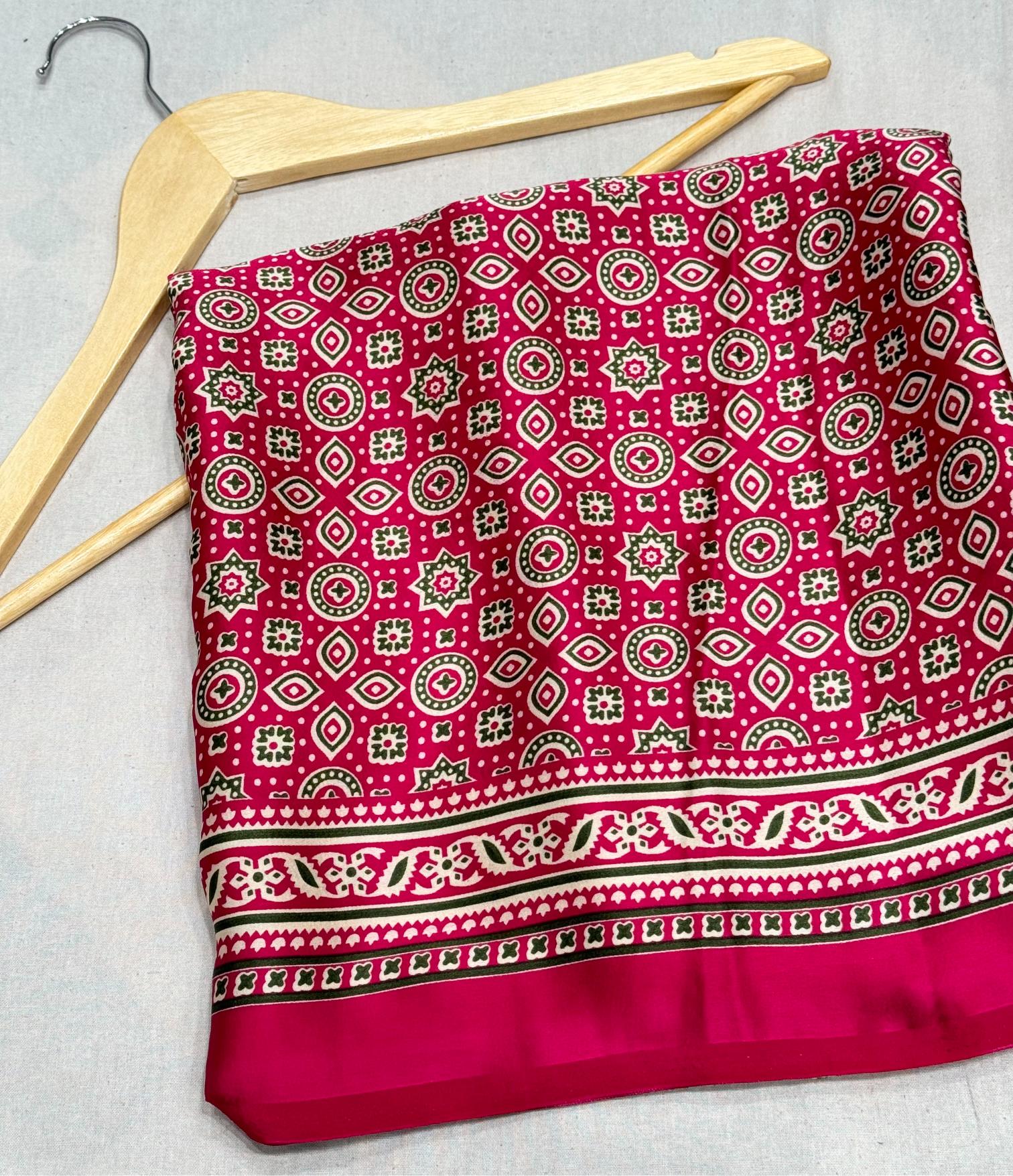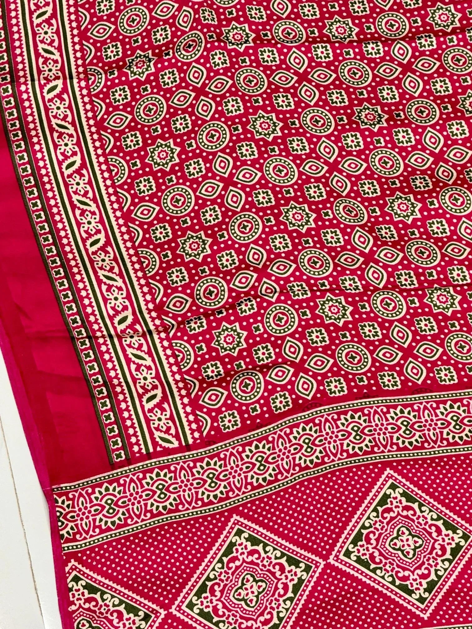 Rani Ajrakh Printed Soft Modal Silk Natural Print Saree P1