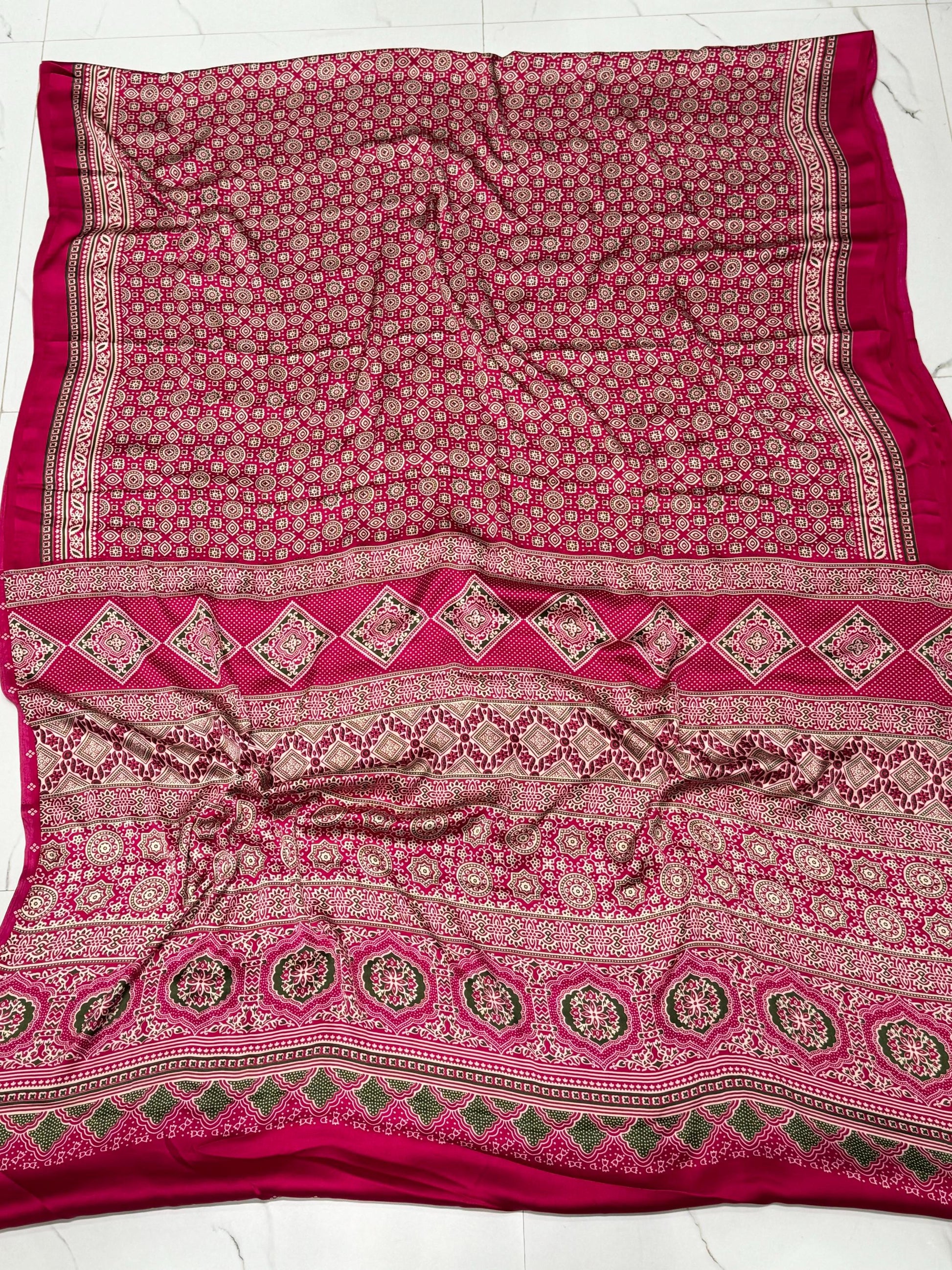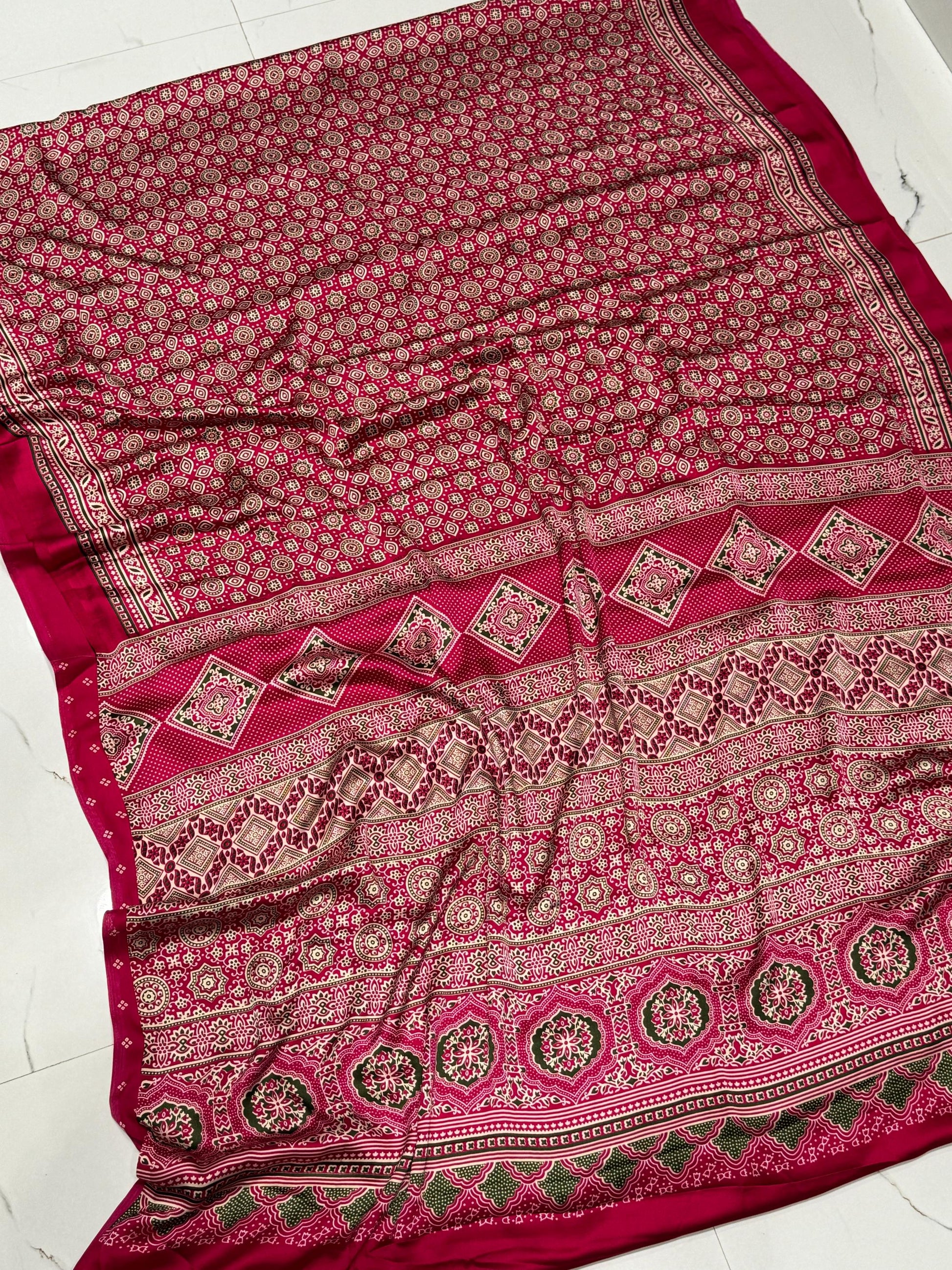 New ajrakh modal Silk Ajrakh Fancy pallu saree