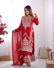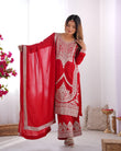 Maroon Vichitra Silk Fabric With Beautiful Embroidery Sequence And Dori Work Suit Set