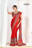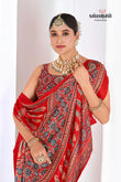 Red Ajrakh Printed Modal Silk Plain Saree With Ajrakh Blouse P6