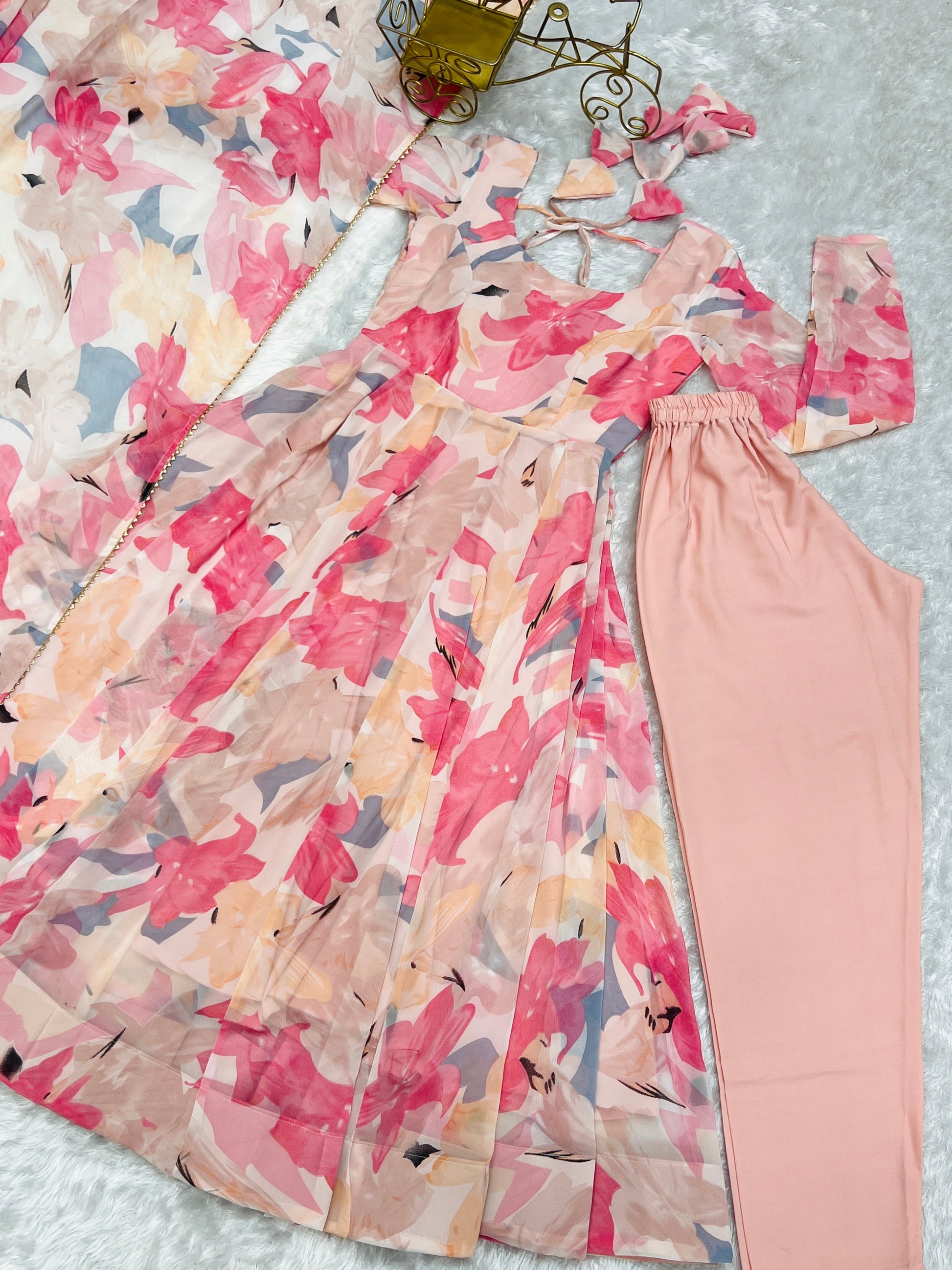 PINK HEAVY PURE FOX GEORGETTE MULTI FLORAL PRINT SALWAR SUIT