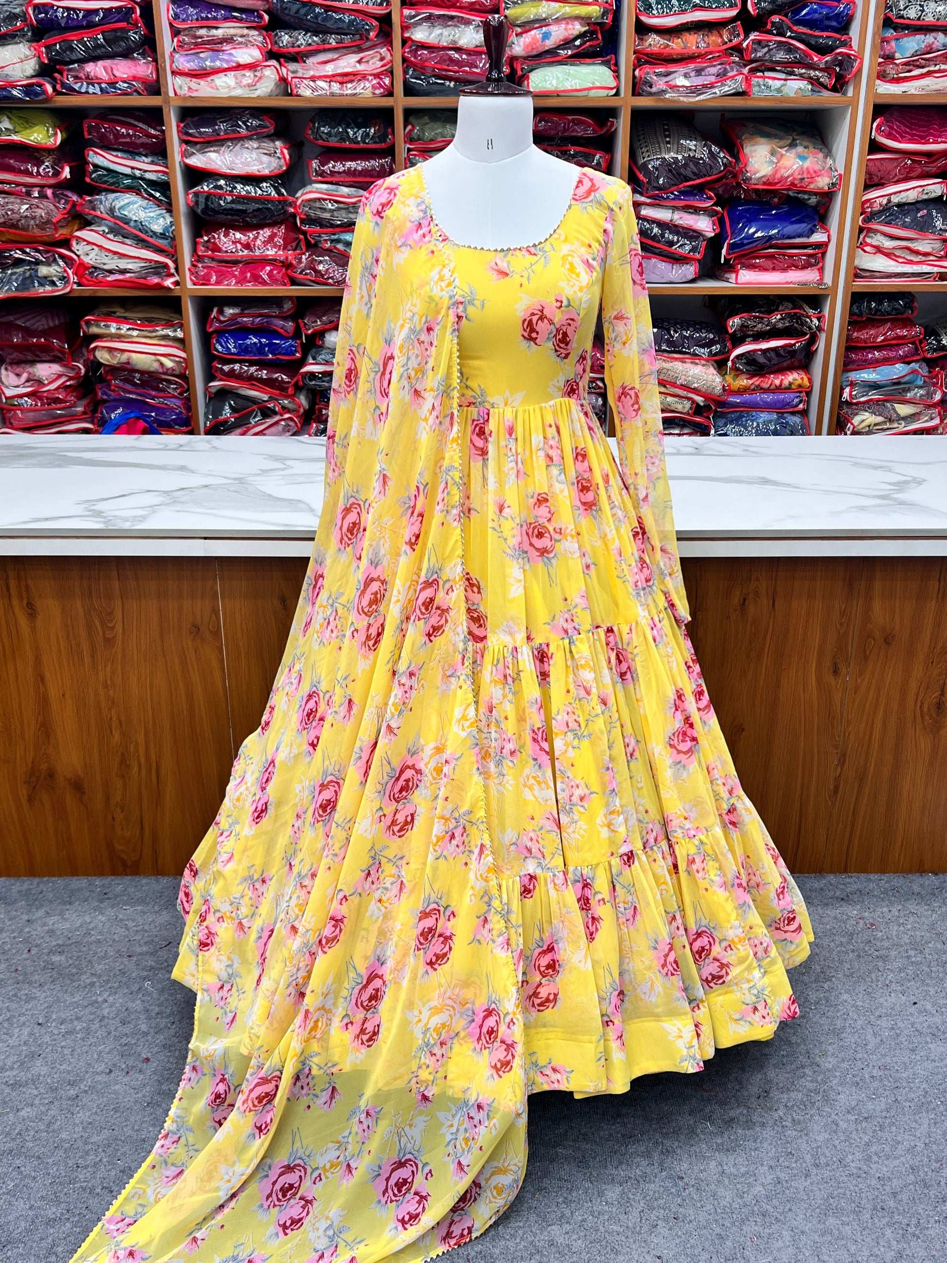 Pure Soft Fox Georgette Floral Print Fabric Fully Flair Anarkali,with Duppta Set,pent Ready To Wear