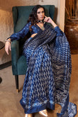 Soft Blue Ajrakh Patola Printed Satin Crepe Saree