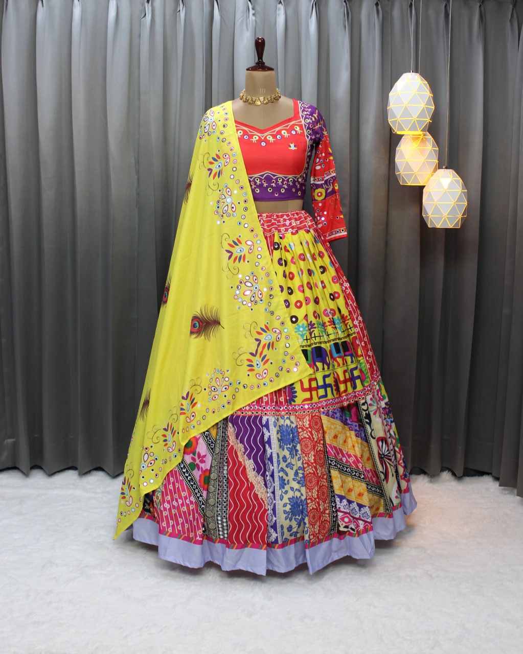 Soft Butter Silk Chaniya Choli | Fancy Digital with Real Mirror Work for Traditional Wear