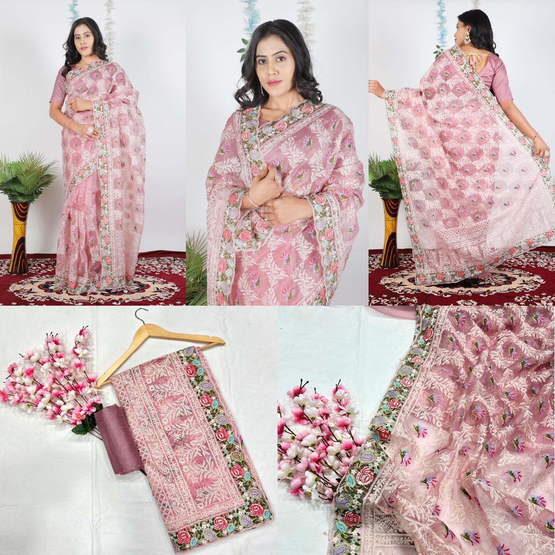 🏷️ Saree :- Tissue Organza With Beautiful Multi Embroidery C Pallu Work