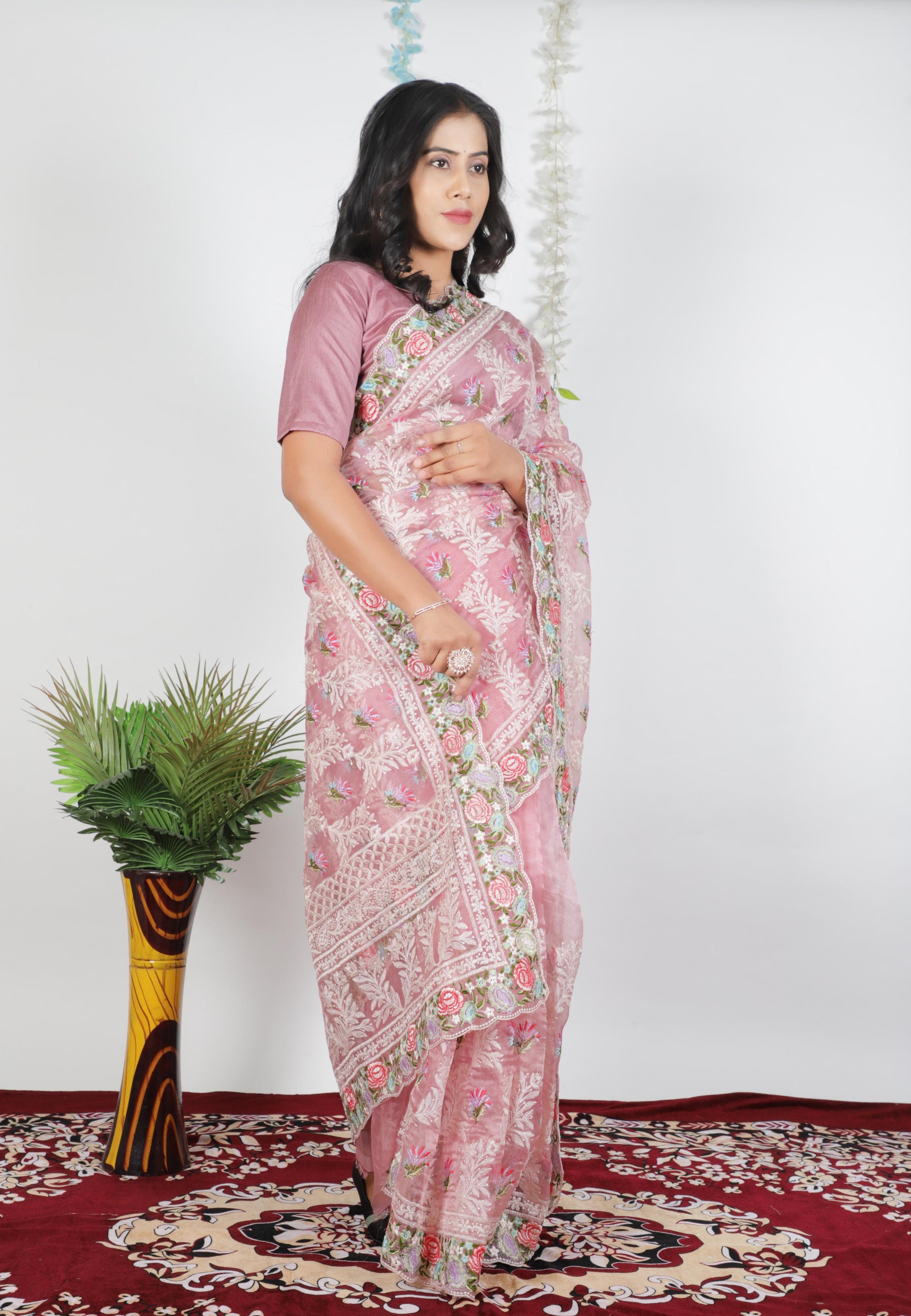 Tissue Organza With Beautiful Multi Embroidery C Pallu Work