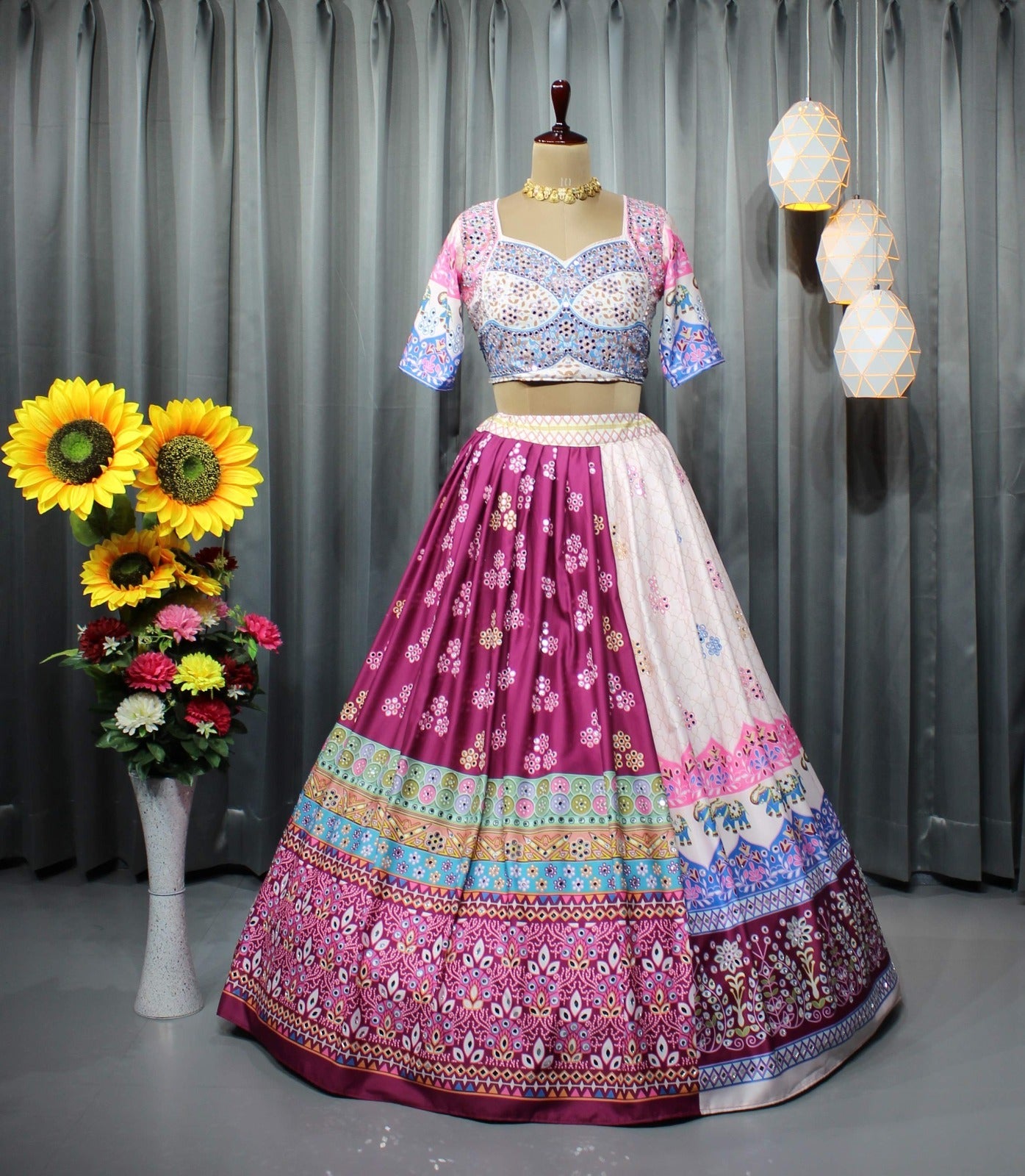 Soft Butter Silk Chaniya Choli | Fancy Digital with Real Mirror Work for Traditional Wear