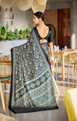 Vibrant Black Ajrakh Printed Soft Modal Silk Natural Print Saree P2