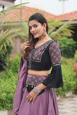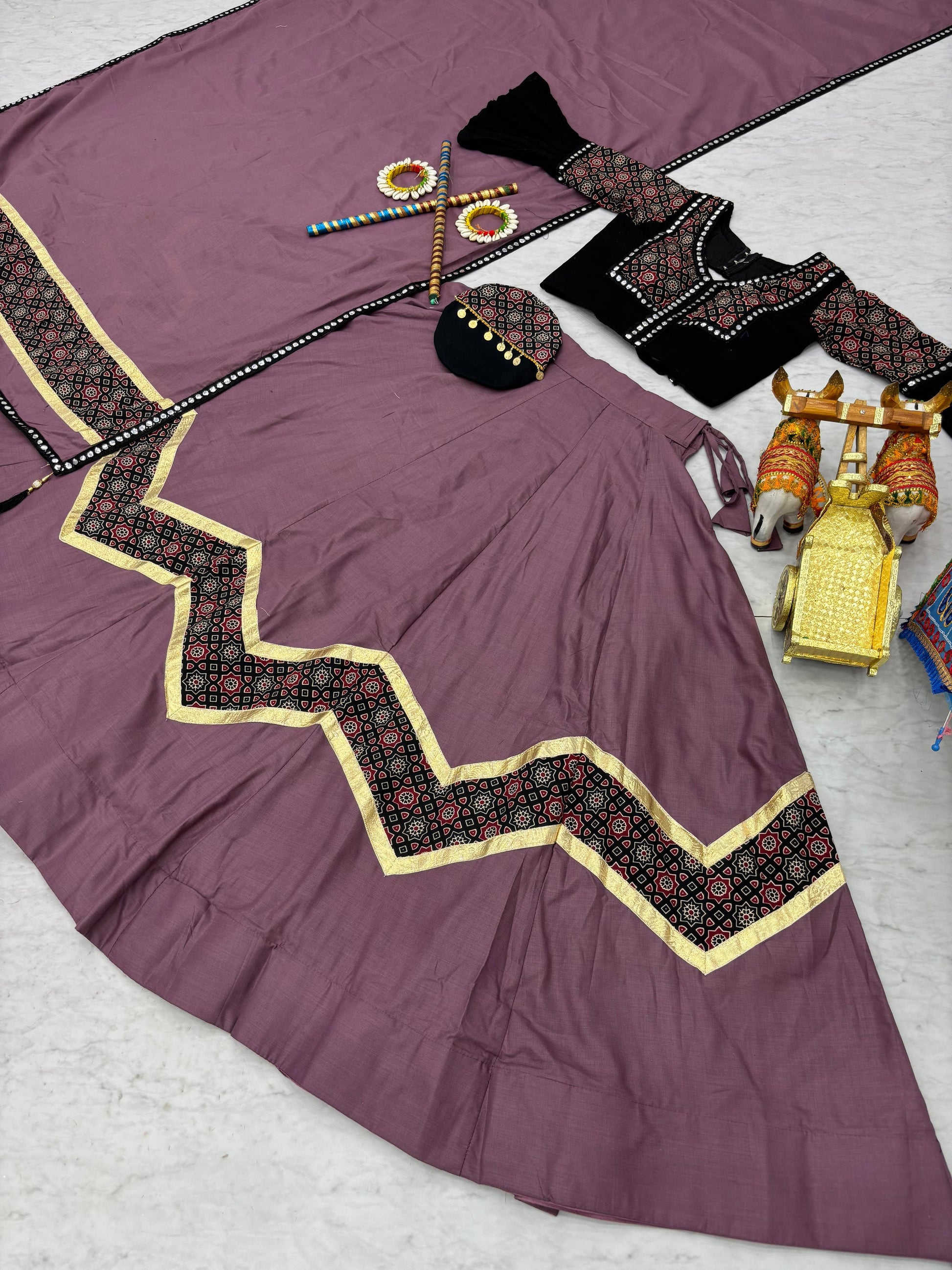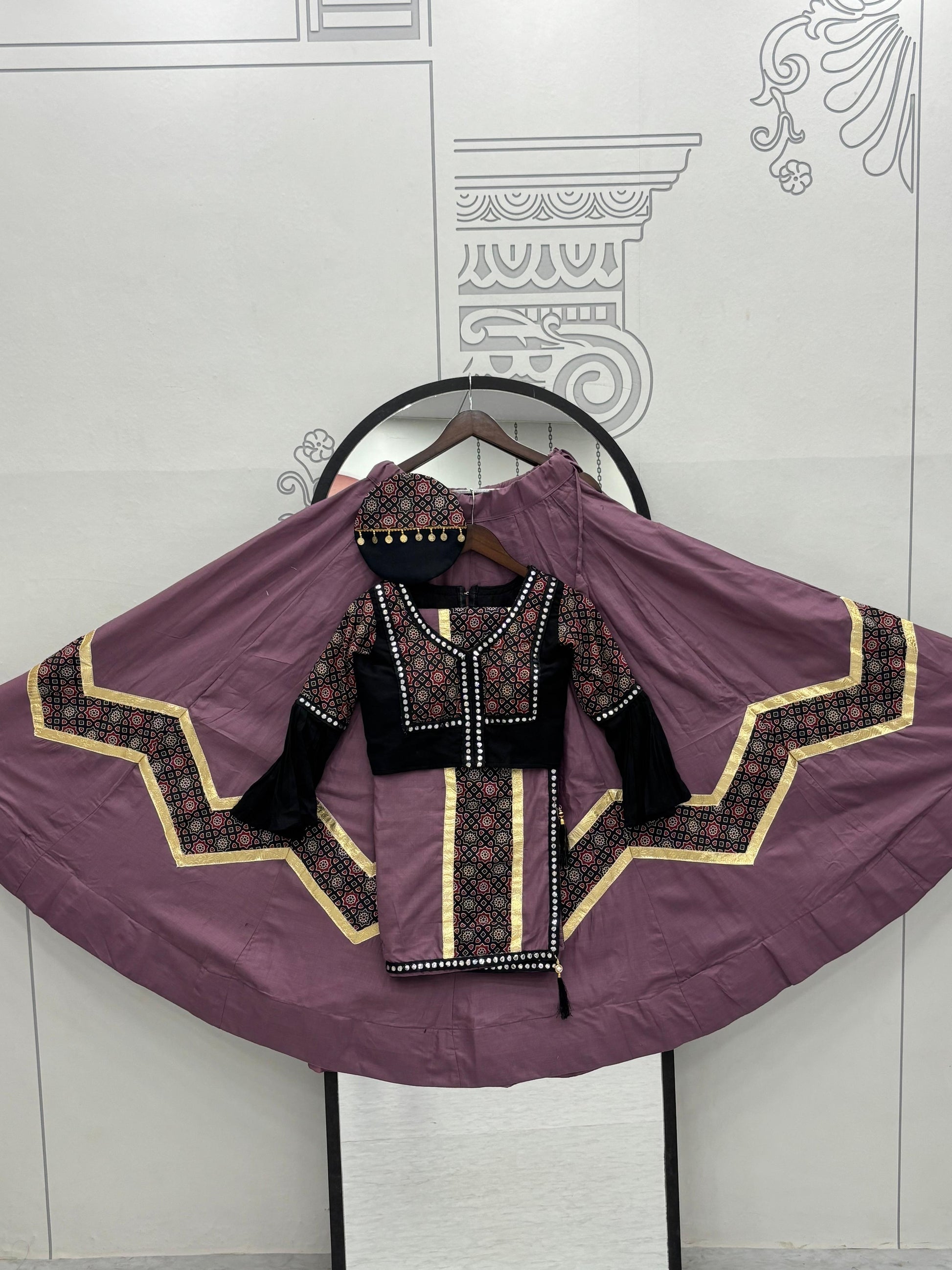 Violet Navratri Special Pure Cotton Ajarakh Work Lehenga Choli