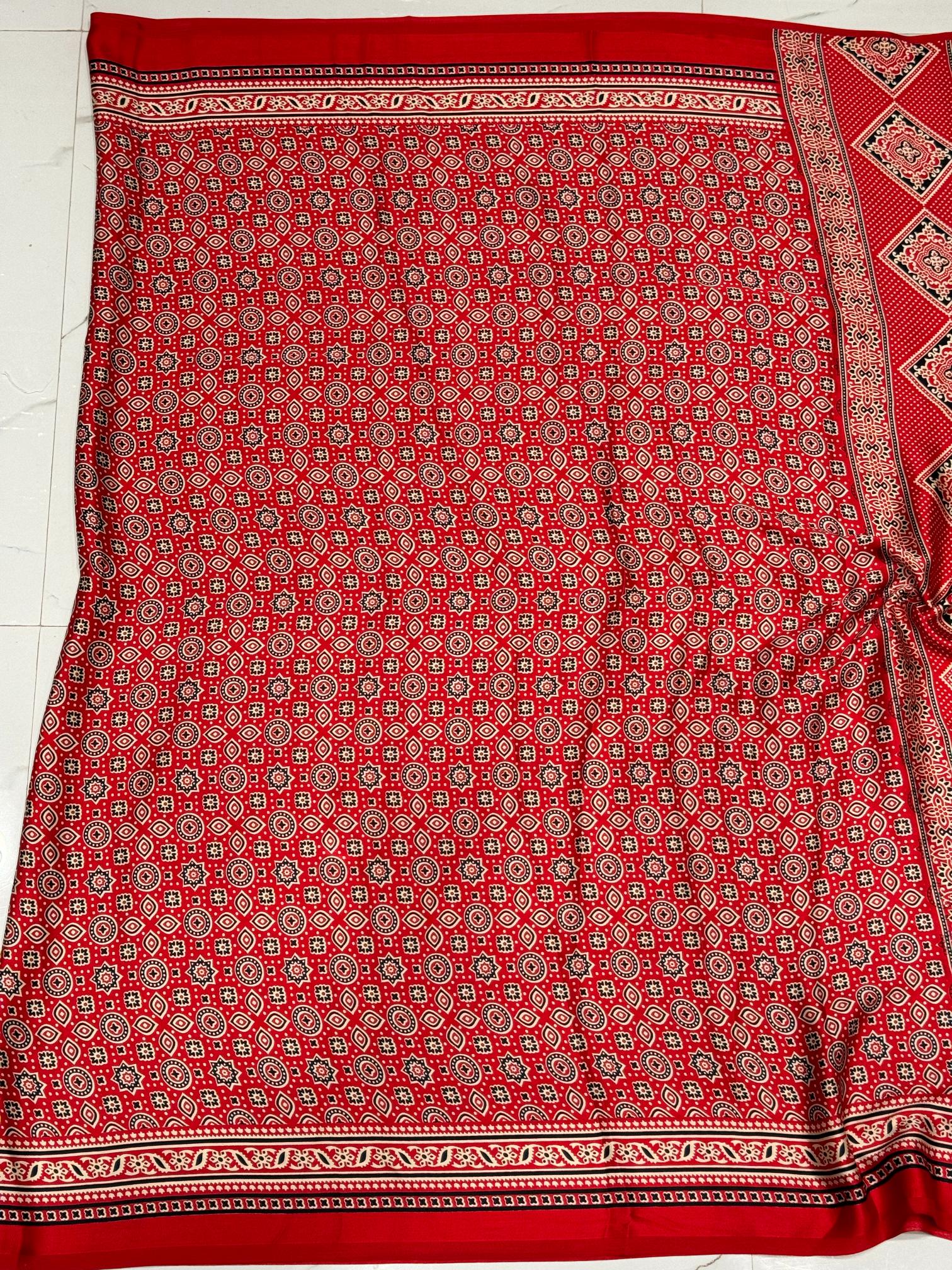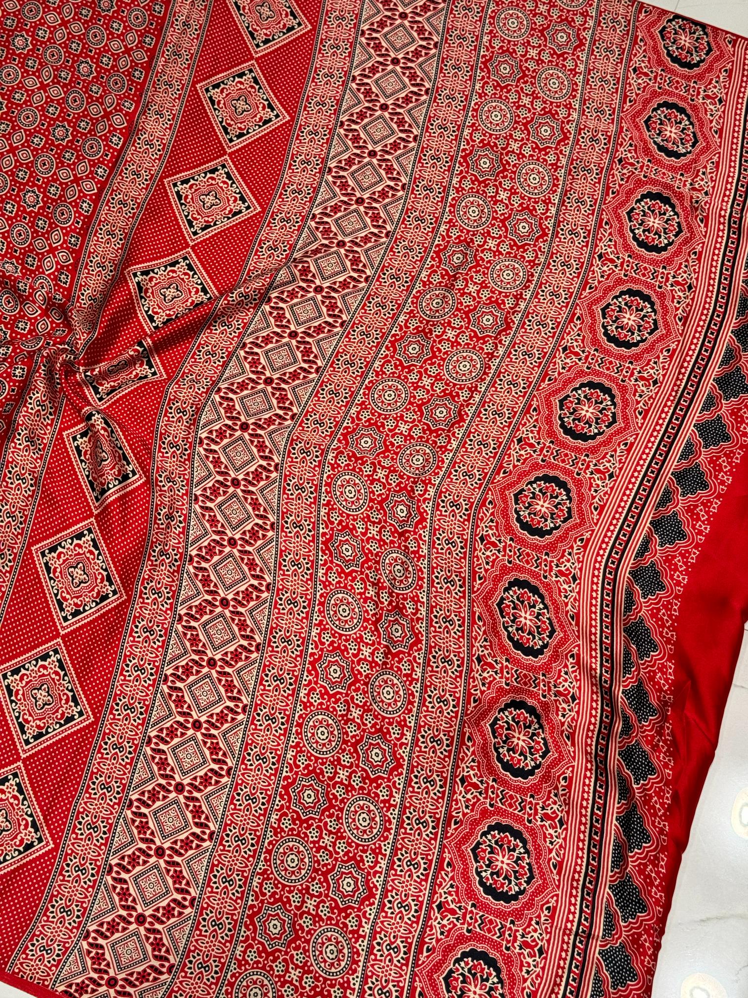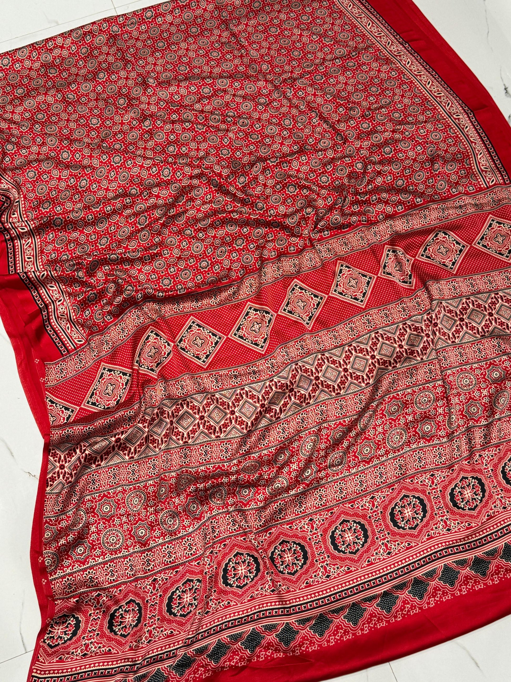 Red Ajrakh Printed Soft Modal Silk Natural Print Saree P1
