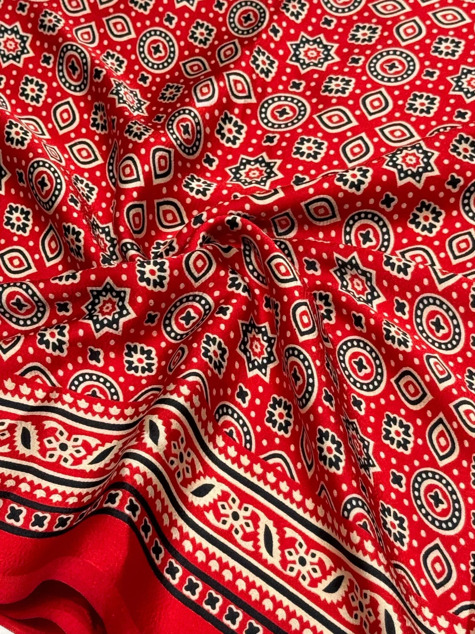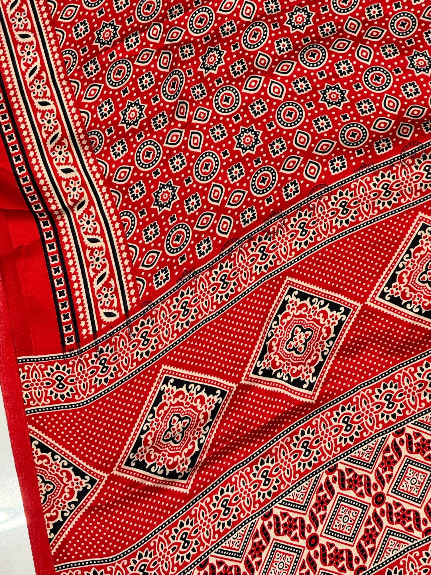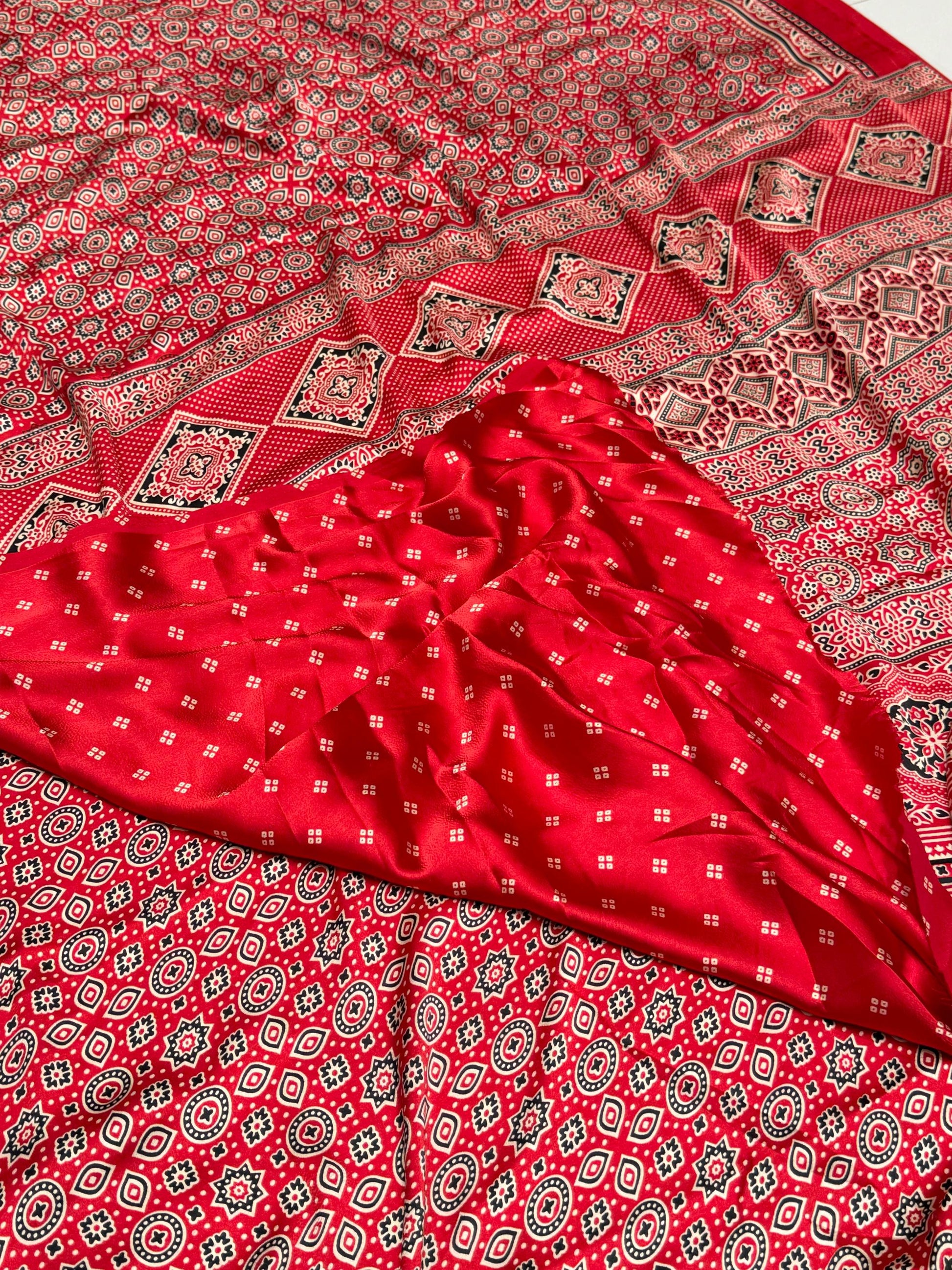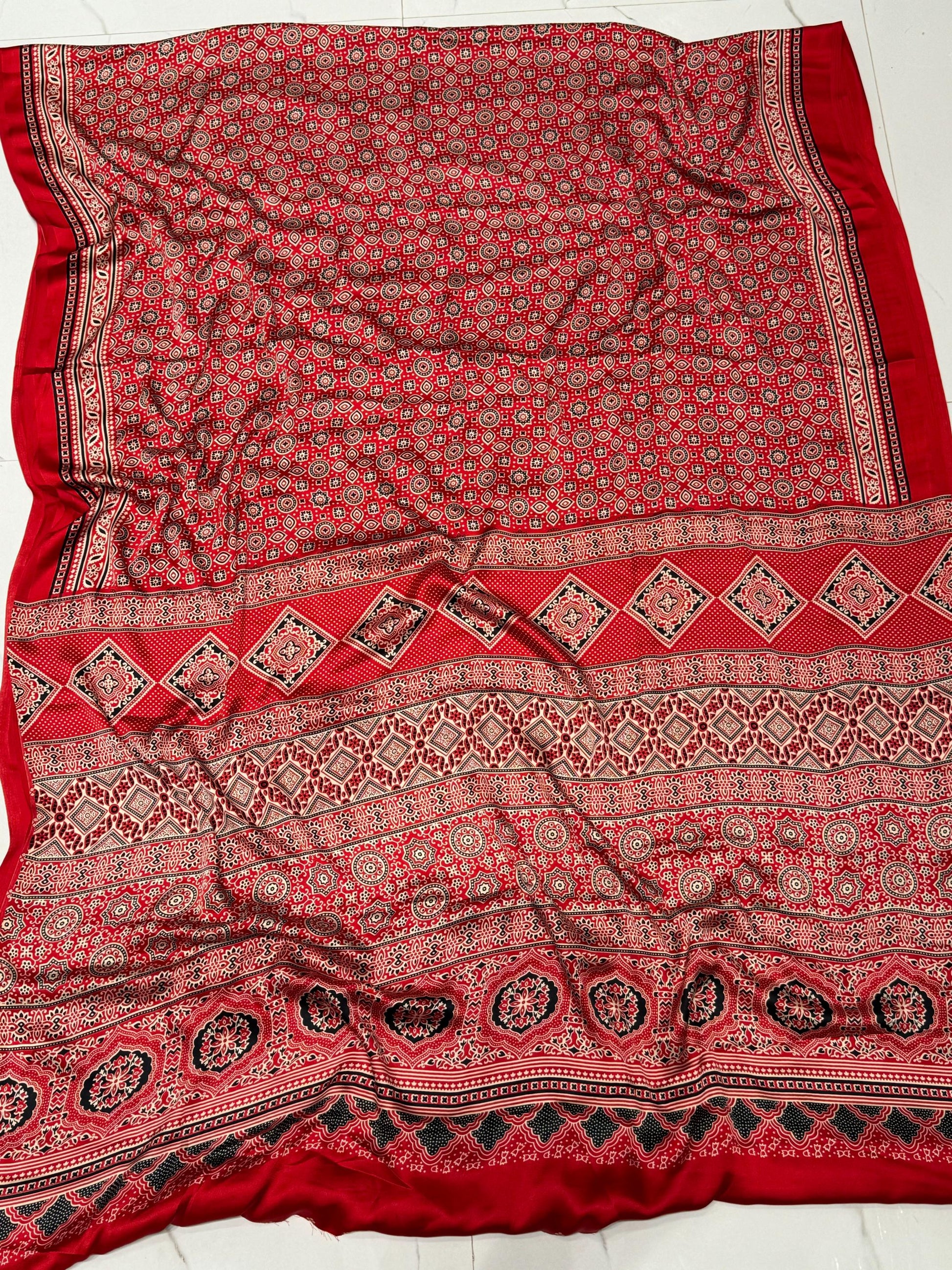 Red Ajrakh Printed Soft Modal Silk Natural Print Saree P1