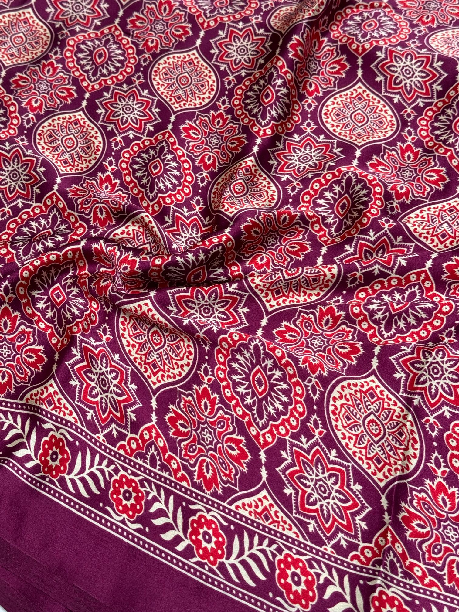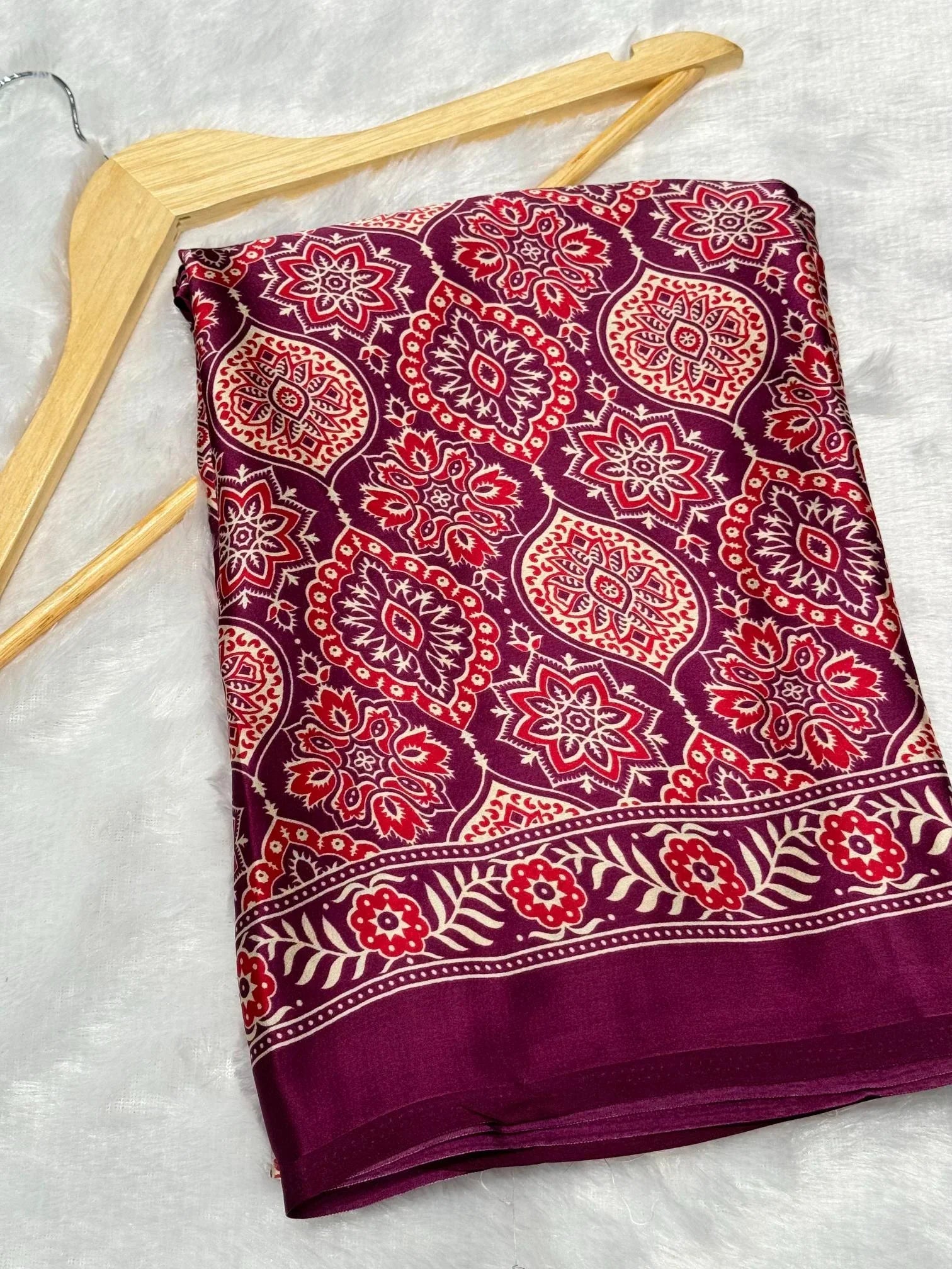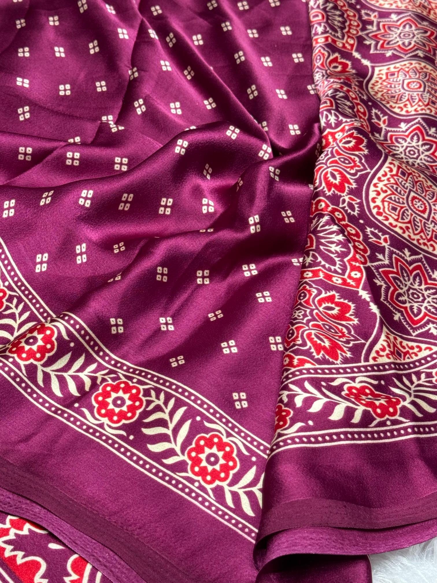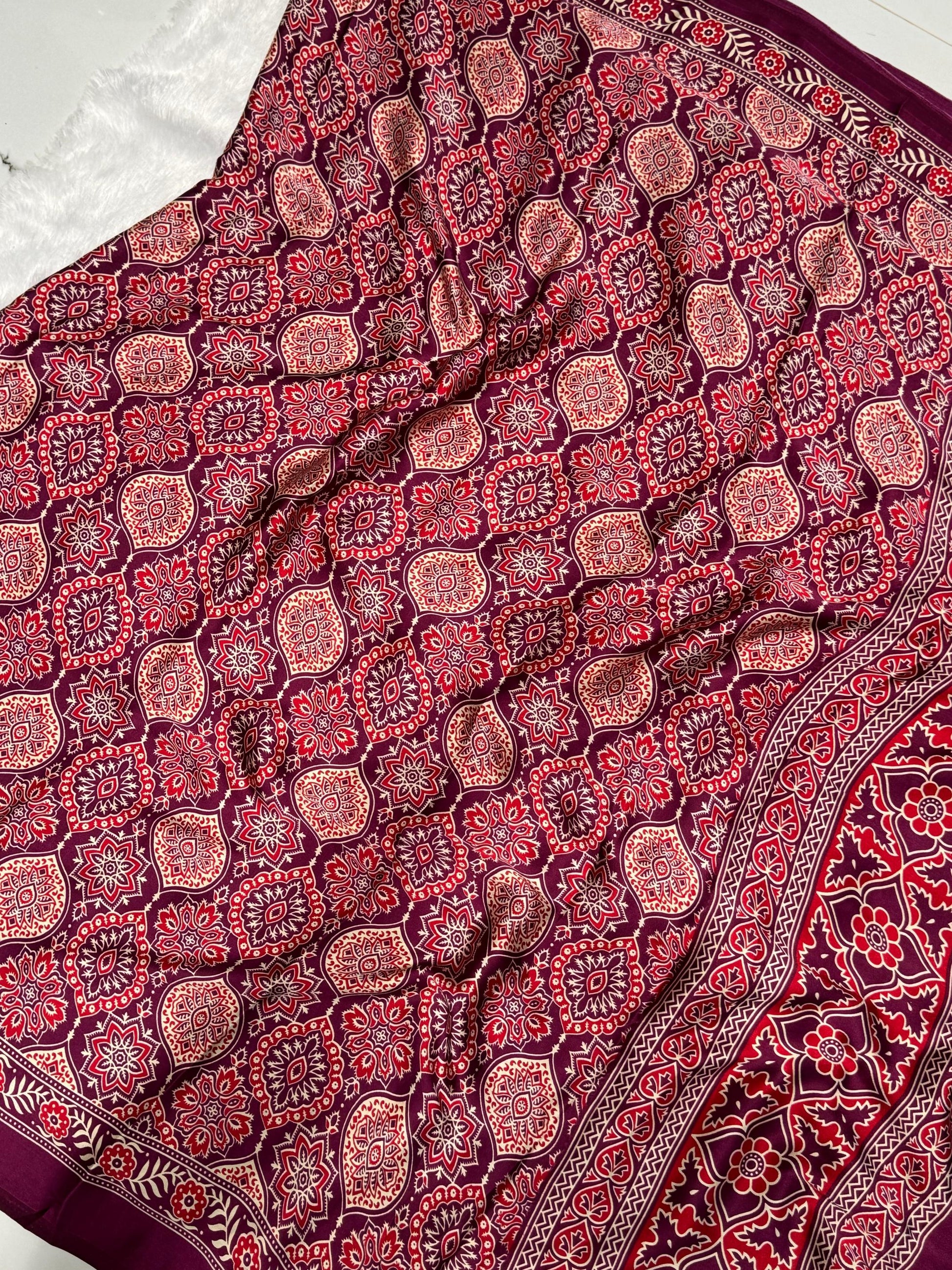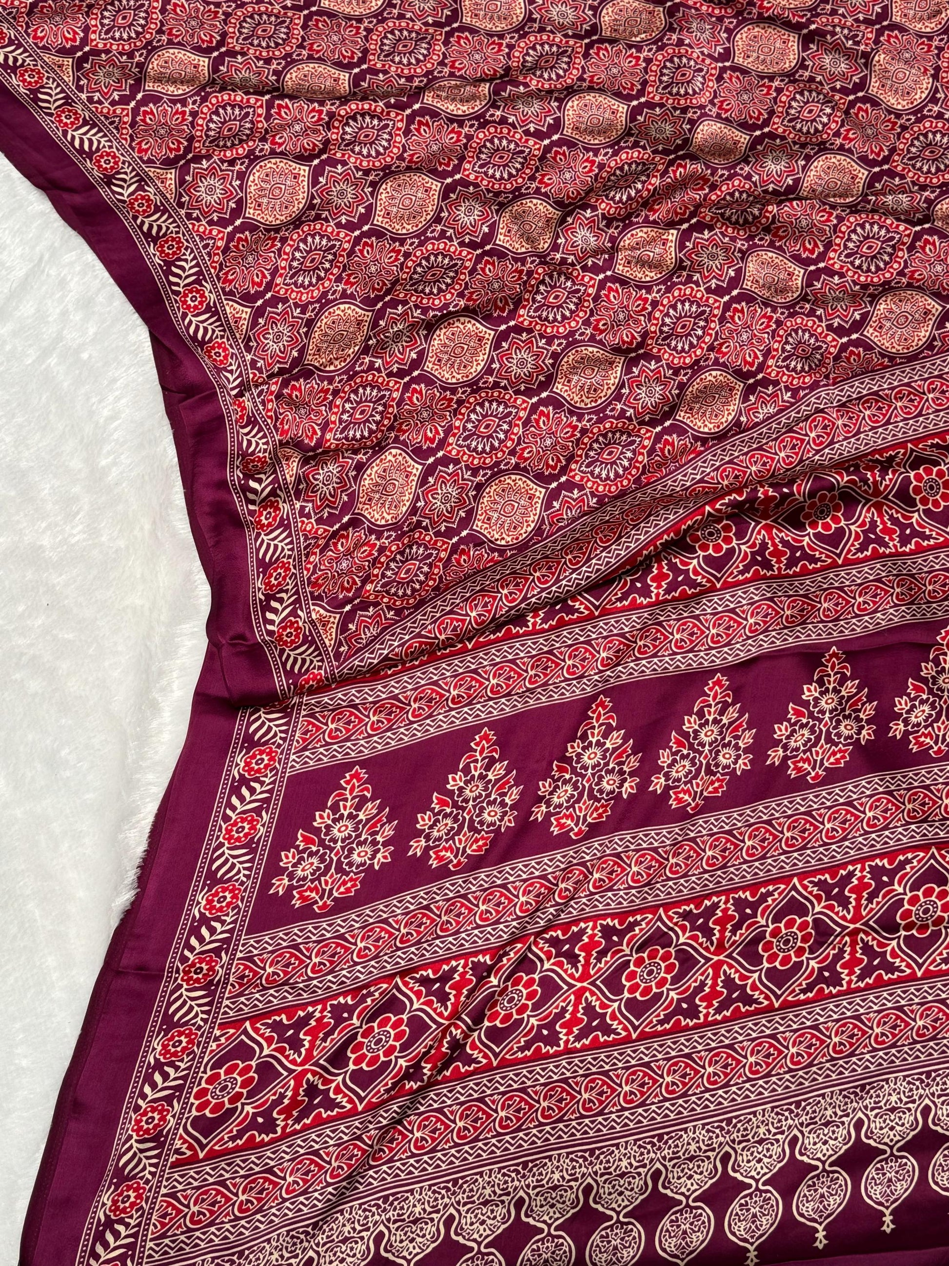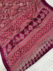 Wine Ajrakh Printed Soft Modal Silk Natural Print Saree P2