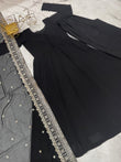 Black Bottle Green Pure Fox Georgette Fabric Kurta With Duppta Plazzo Set