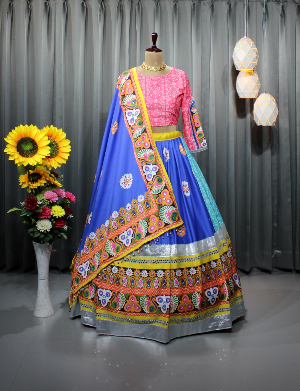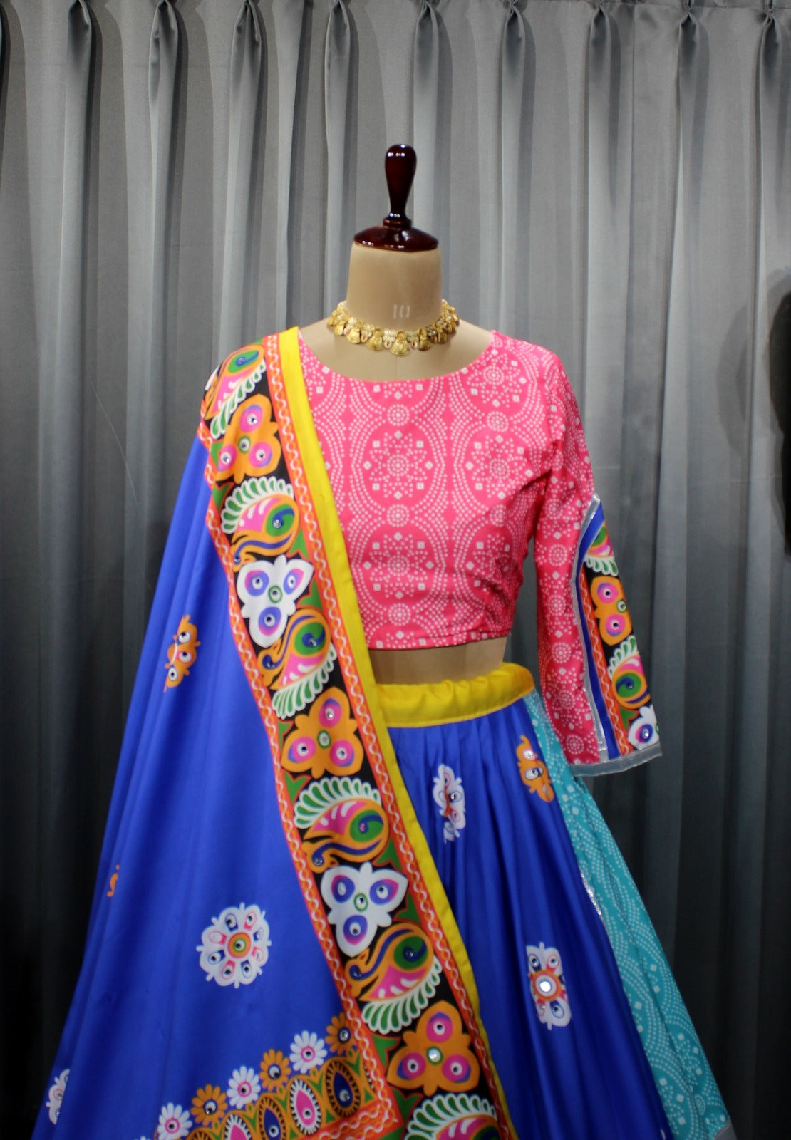 Multi Soft Butter Silk Chaniya Choli | Fancy Digital with Real Mirror Work for Traditional Wear